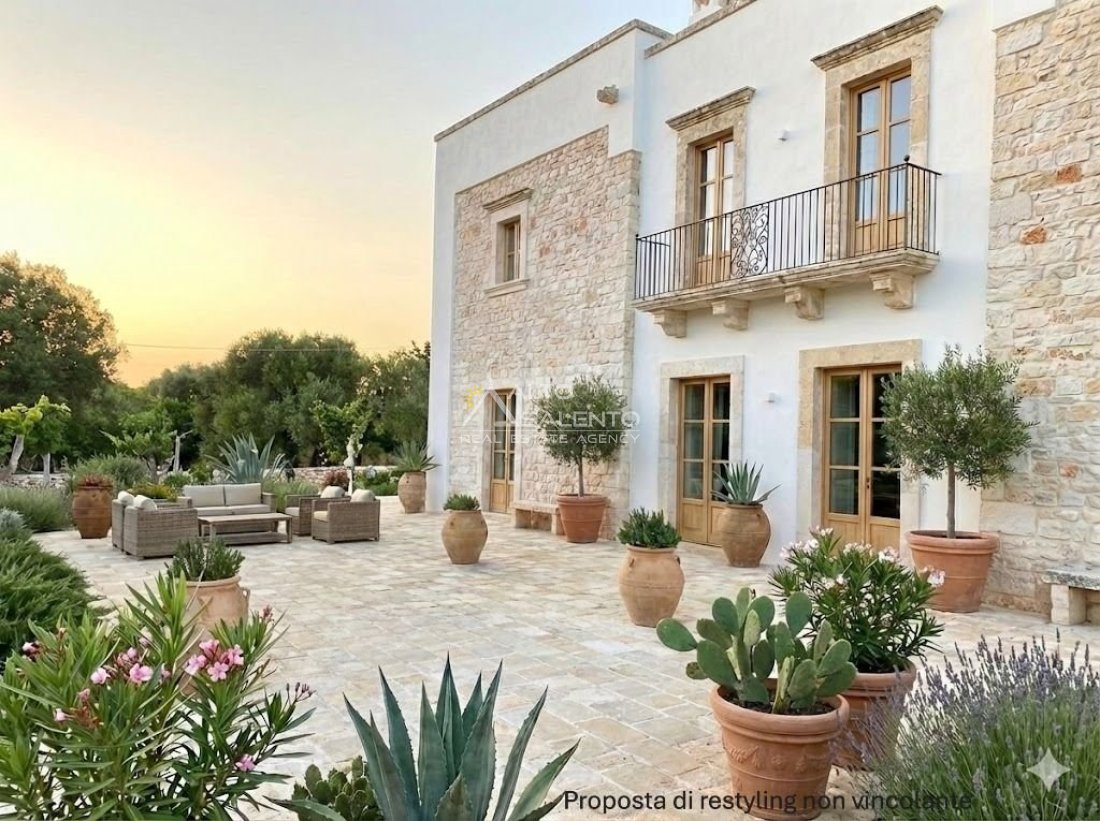 Paesaggio: Il terreno ospita ulivi secolari, offrendo la possibilità di avviare una produzione agricola biologica di nicchia o di realizzare giardini mediterranei con piscina a sfioro.