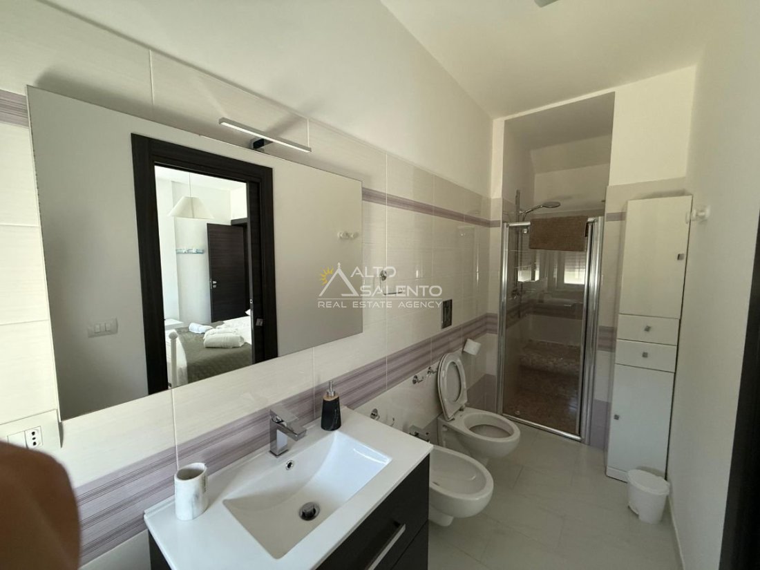 La villa dalle forme essenziali è composta da 2 camere da letto e 2 bagni, cucinino, soggiorno e veranda. Ubicata a circa 3 km dal paese in zona tranquilla e riservata.