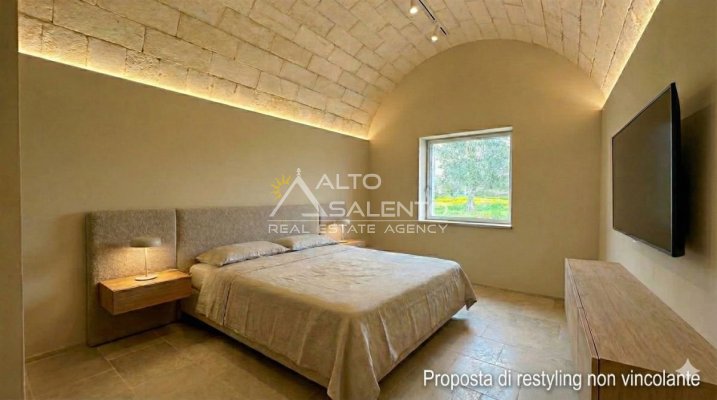 Il casale con trulli ristrutturati in zona Ostuni viene ceduto nello stato attuale, con possibilità di completamento delle finiture interne tramite supporto di tecnico interior designer, permettendo la personalizzazione degli ambienti.
