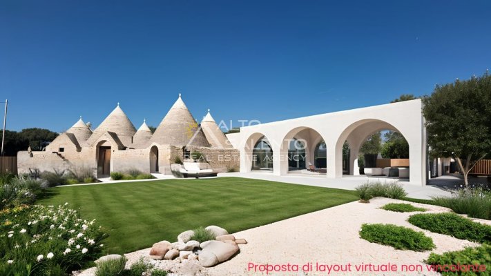 Il casale con trulli ristrutturati in zona Ostuni viene ceduto nello stato attuale, con possibilità di completamento delle finiture interne tramite supporto di tecnico interior designer, permettendo la personalizzazione degli ambienti.