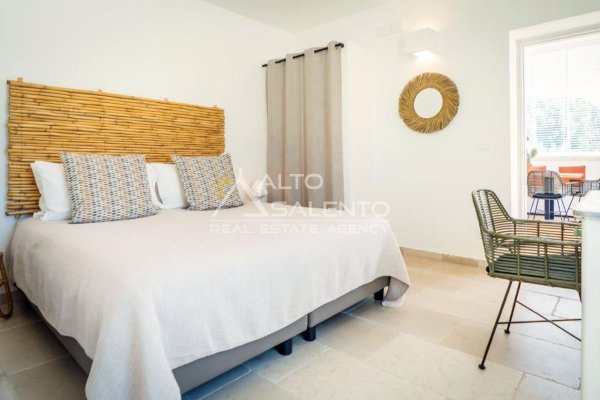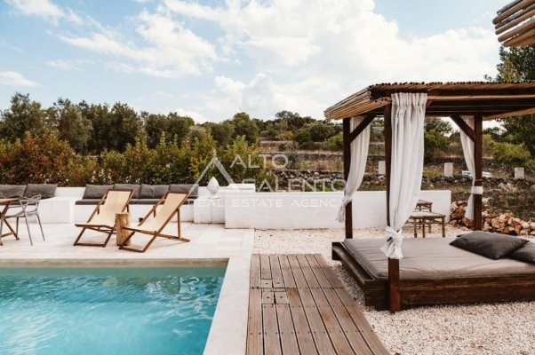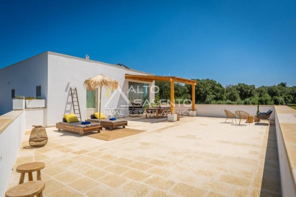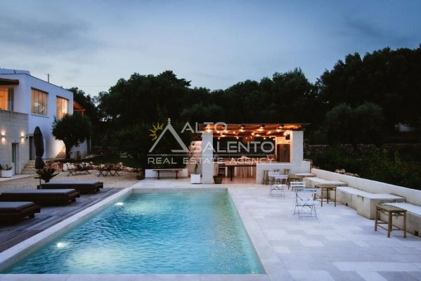 A completare la struttura vi è una piscina di 40 mq al sale, a bordo piscina un patio con cucina tutta attrezzata per godersi la giornata all'aperto.