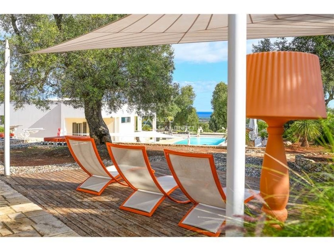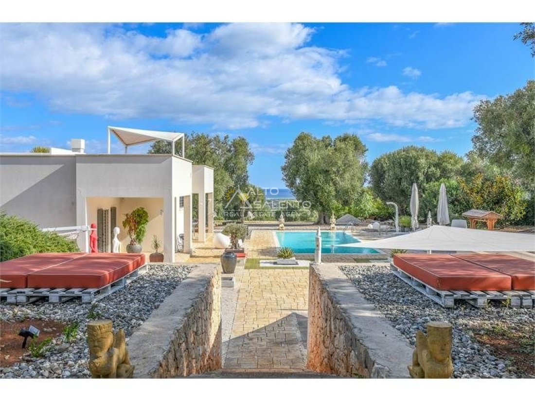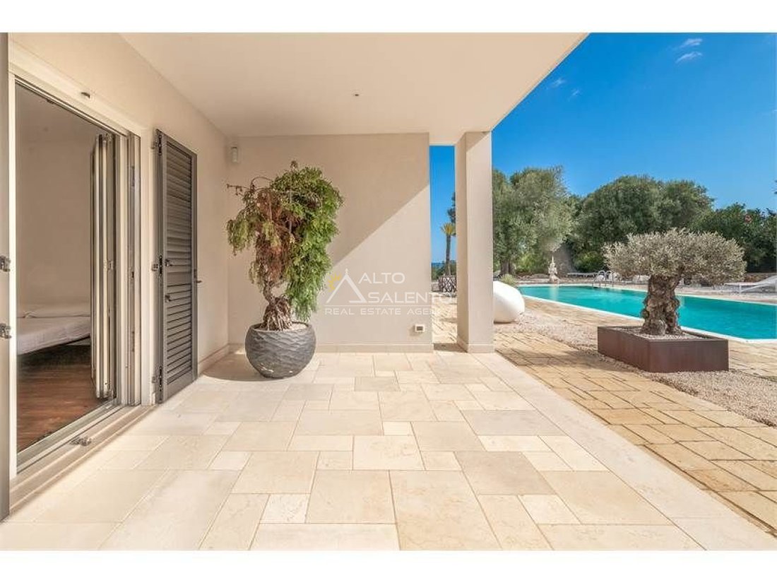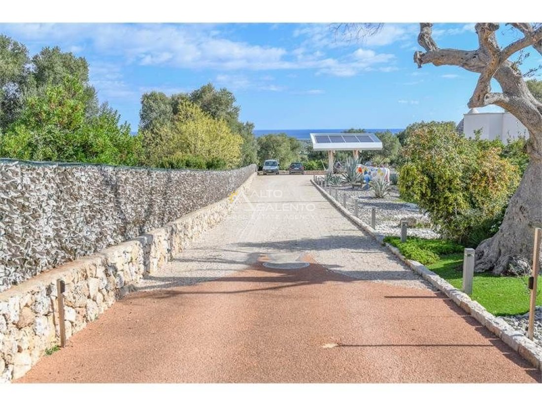 L’architettura della proprietà e le vedute panoramiche che dalla stessa si godono sono di rara bellezza, ricche dei colori tipici della Puglia: il blu del mare, il rosso intenso della terra, il verde scuro degli ulivi, il bianco abbagliante della calce.
