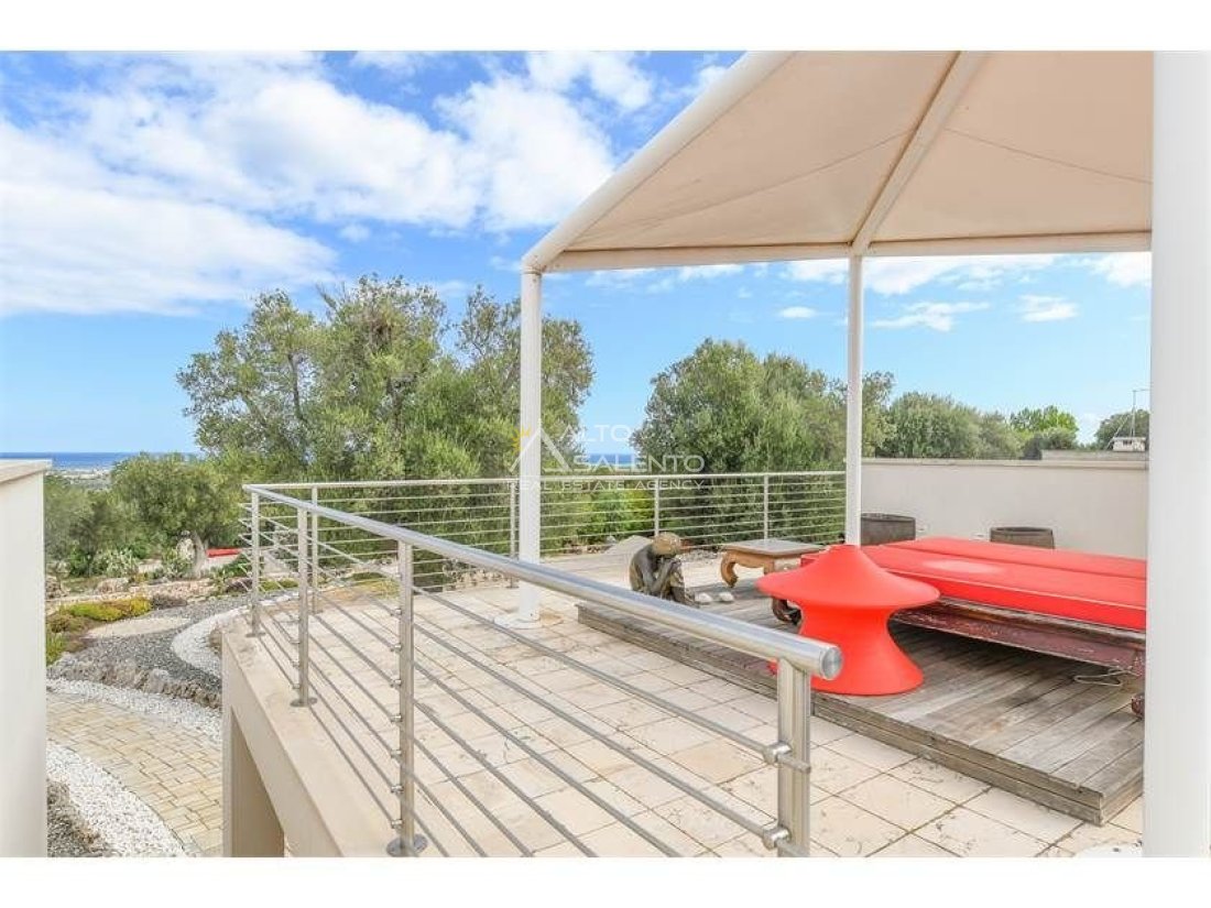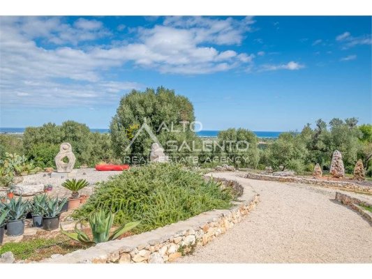 Grazie alla posizione elevata, domina l'intera vallata, regalando una vista aperta e unica sul mare. L'intera e vasta proprietà è completamente recintata ed è circondata da alberi di ulivo.