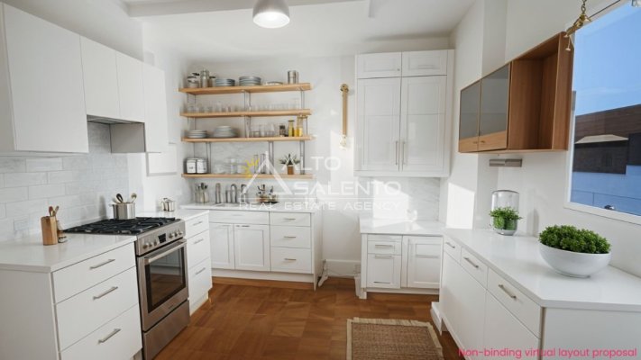 Le foto comprendono lo stato di fatto dell’immobile e proposte di restyling, studiate per mostrare il potenziale estetico e funzionale dell’abitazione attraverso interventi di miglioria non strutturali.