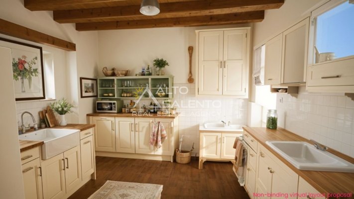 Ubicato in una zona molto tranquilla nelle campagne di San Vito dei Normanni. La struttura è a 7 km da San Michele Salentino ed 11 km da San Vito dei Normanni, si compone da tre camere da letto, due bagni, una cucina ed uno spazioso soggiorno. La superficie è di circa 160 mq totali.