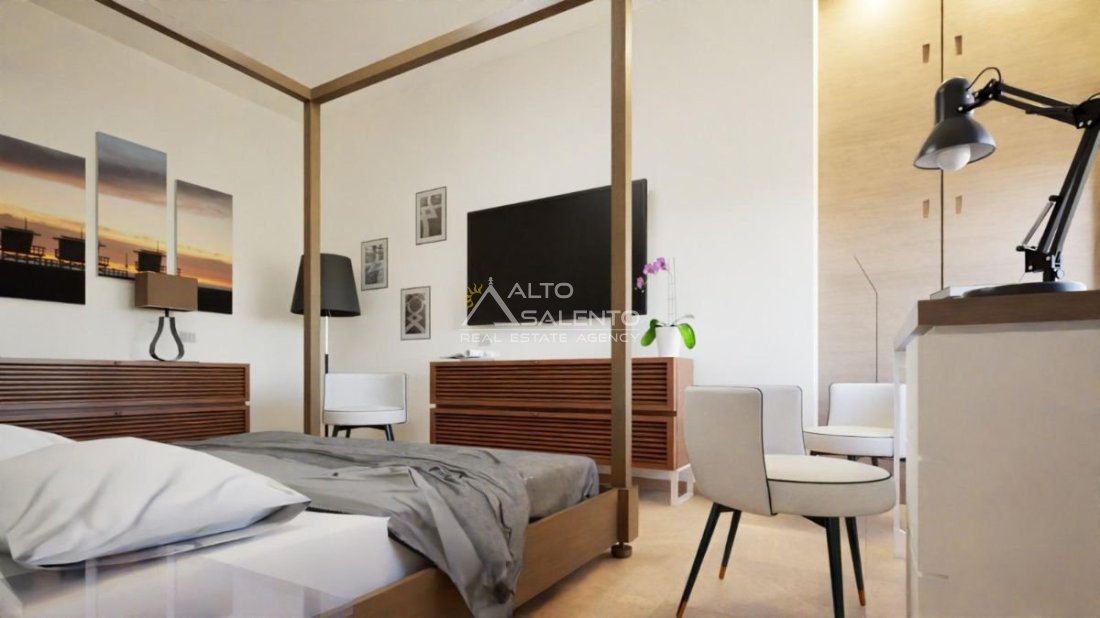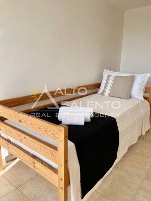 Abitazione principale (160 mq): Ambienti luminosi caratterizzati da ampie vetrate, finiture di pregio e una distribuzione degli spazi interni ottimizzata per il massimo comfort abitativo.