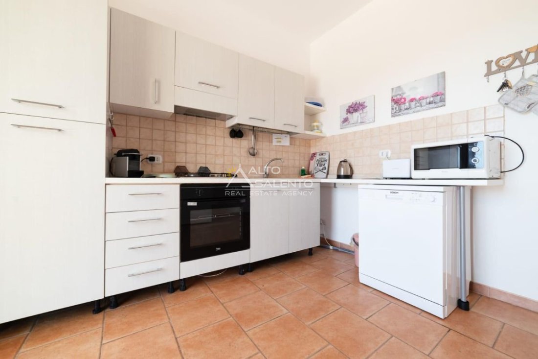 Per un totale di 92 mq si divide in soggiorno con cucina abitabile, due camere da letto e due bagni.