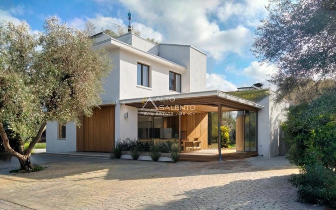 In posizione panoramica a Carovigno, questa villa con vista mare offre spazi ampi e luminosi, immersa in un terreno privato di oltre 100 ulivi e altrettanti mandorli, tipico della campagna pugliese.
