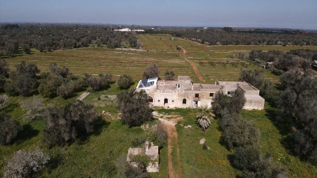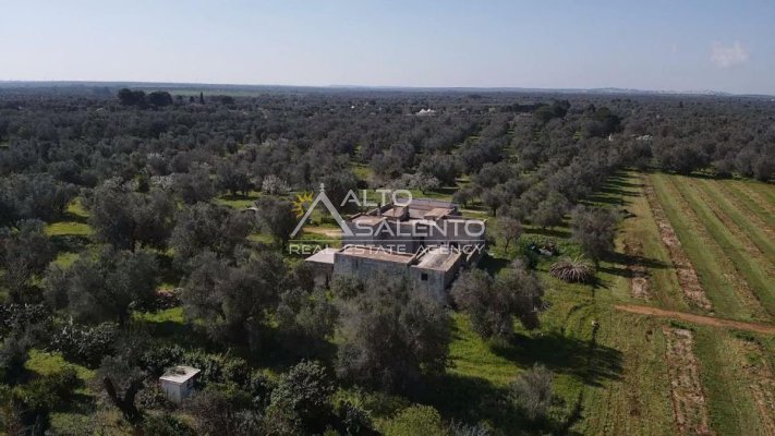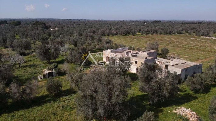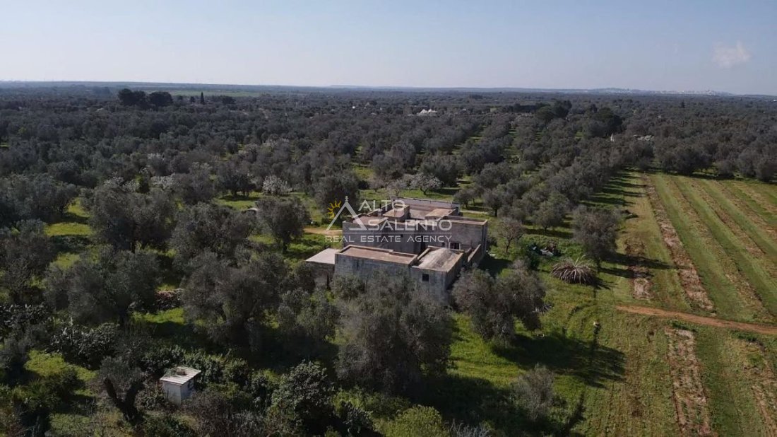 Immersa in circa 24.000 mq di uliveto secolare, questa autentica masseria in pietra conserva tutto il fascino della tradizione pugliese. La proprietà comprende l’abitazione padronale su due livelli, oltre a stalle e depositi, e presenta volte a stella e a botte perfettamente conservate.