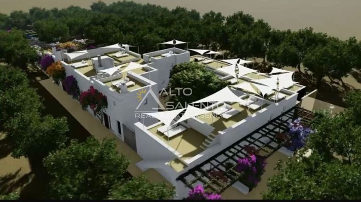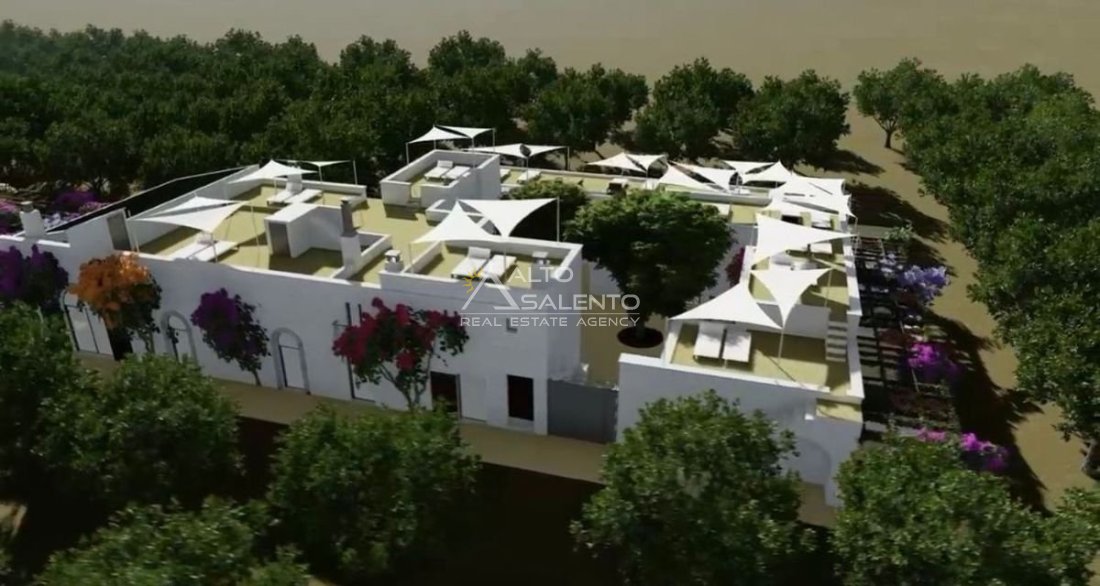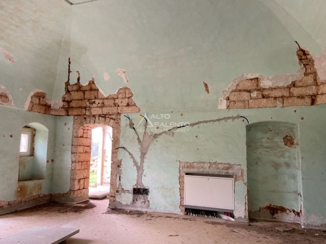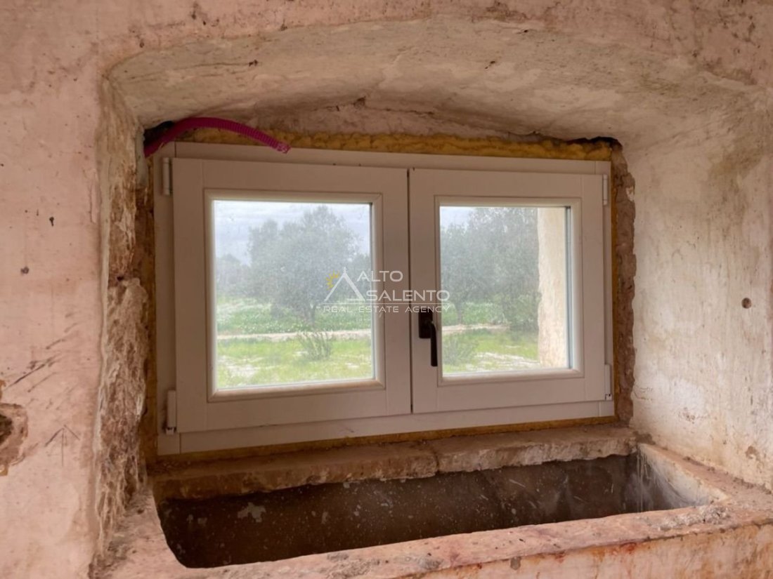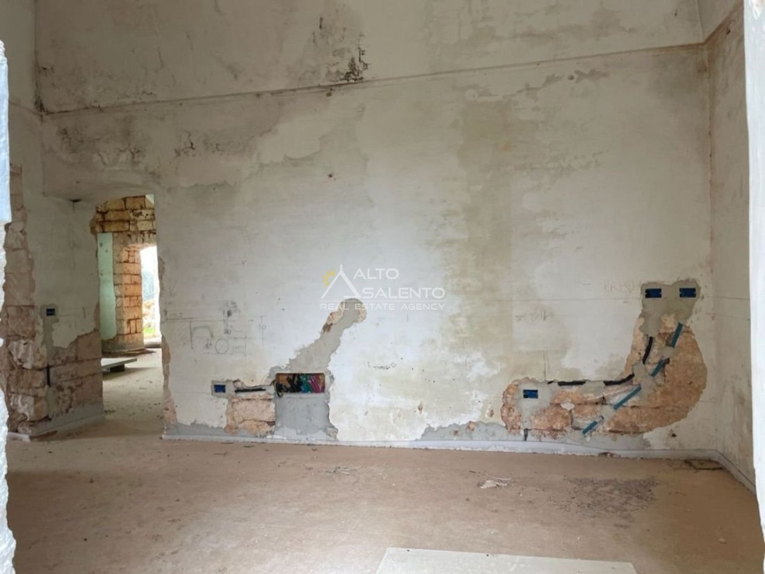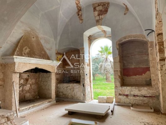 Immersa in circa 24.000 mq di uliveto secolare, questa autentica masseria in pietra conserva tutto il fascino della tradizione pugliese. La proprietà comprende l’abitazione padronale su due livelli, oltre a stalle e depositi, e presenta volte a stella e a botte perfettamente conservate.