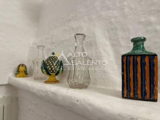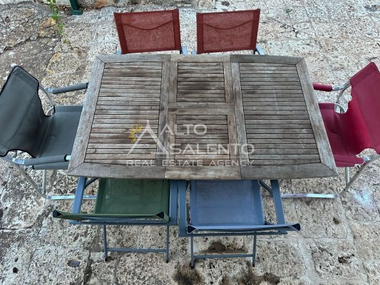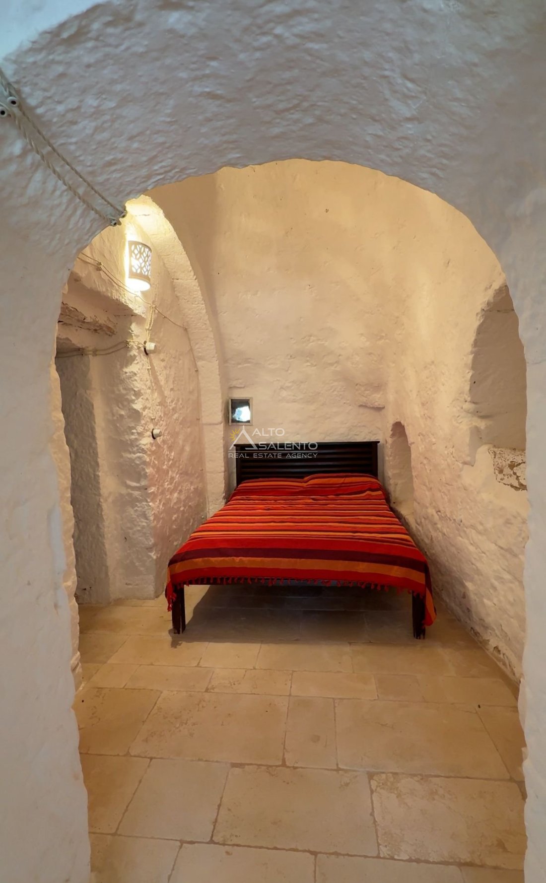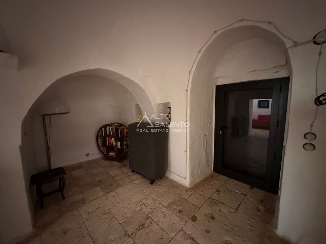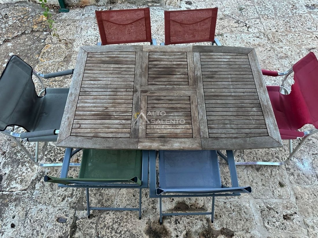 All’esterno, la proprietà regala scorci di rara bellezza: ampie aree pavimentate in chianche originali, zone relax e una splendida piscina privata, perfettamente integrata nel paesaggio. Lo spazio circostante offre aree ombreggiate, angoli di quiete e la possibilità di allestire una cucina all’aperto o un salotto estivo sotto la pergola.