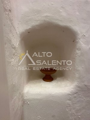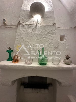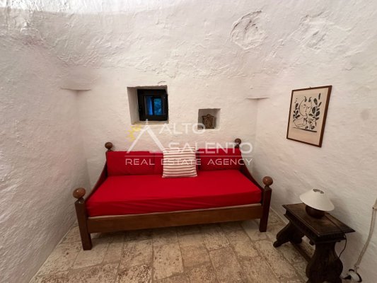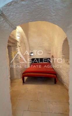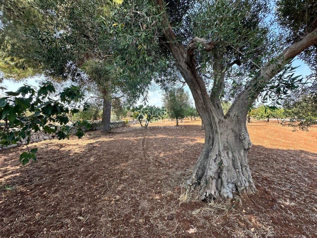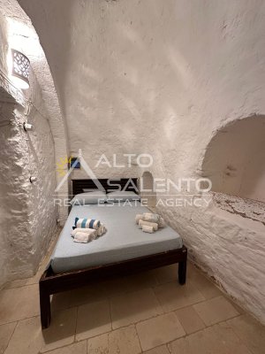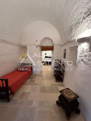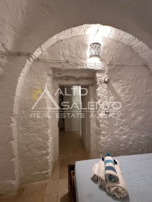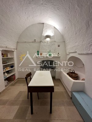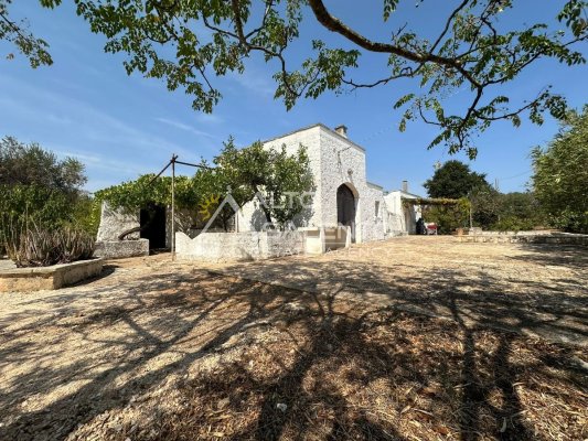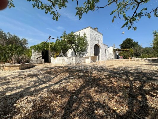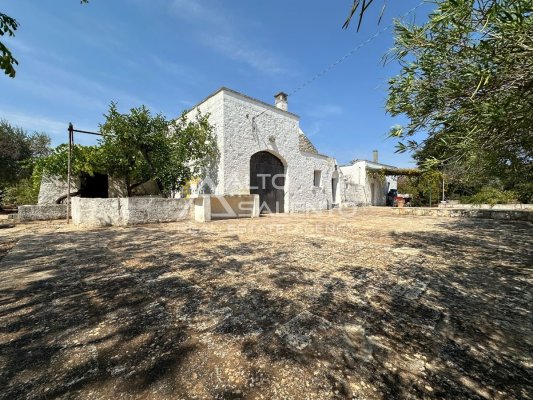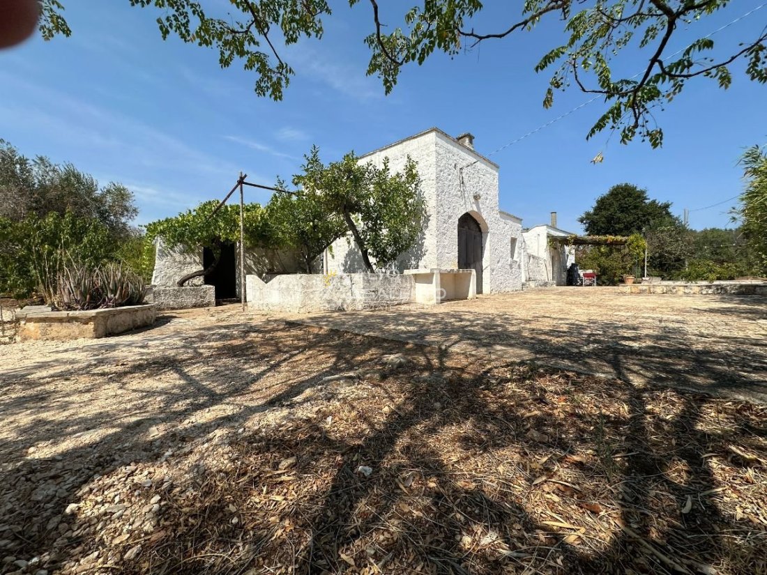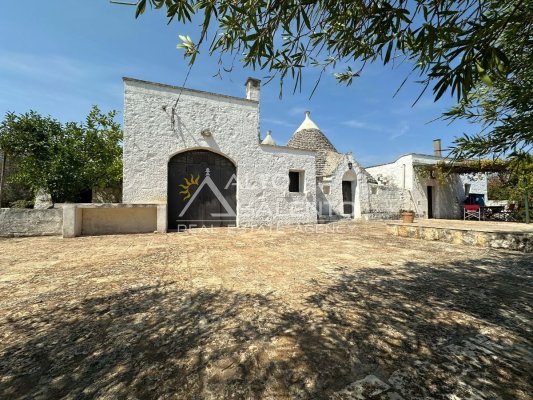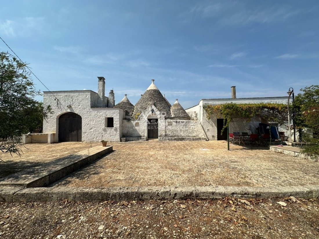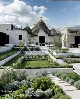 La proprietà si sviluppa con trulli e lamia che dialogano armoniosamente tra loro, uniti da ampie corti in chianche originali che raccontano la storia di un’architettura antica e genuina.