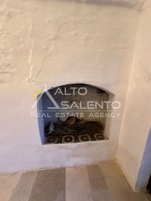 Una cucina abitabile con forno a legna, autentico cuore della tradizione pugliese;