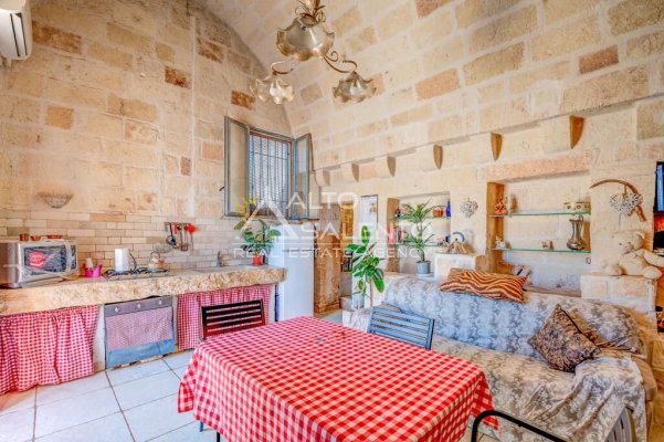 Questa proprietà di pregio, composta da trulli e lamie ristrutturati, rappresenta un perfetto connubio tra tradizione e comfort moderno. Ogni dettaglio è stato curato con attenzione, preservando l’anima storica dell’immobile e valorizzando i materiali tipici della zona.