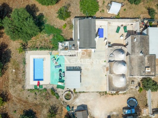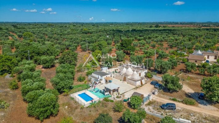 Una magnifica villa con piscina e trulli immersa nel silenzio e nella bellezza autentica delle campagne tra Ostuni e Ceglie Messapica, nel cuore della Valle d'Itria.