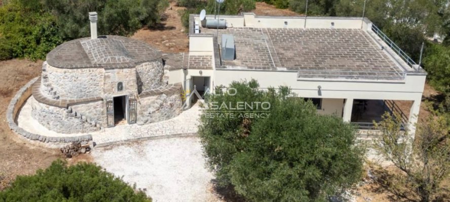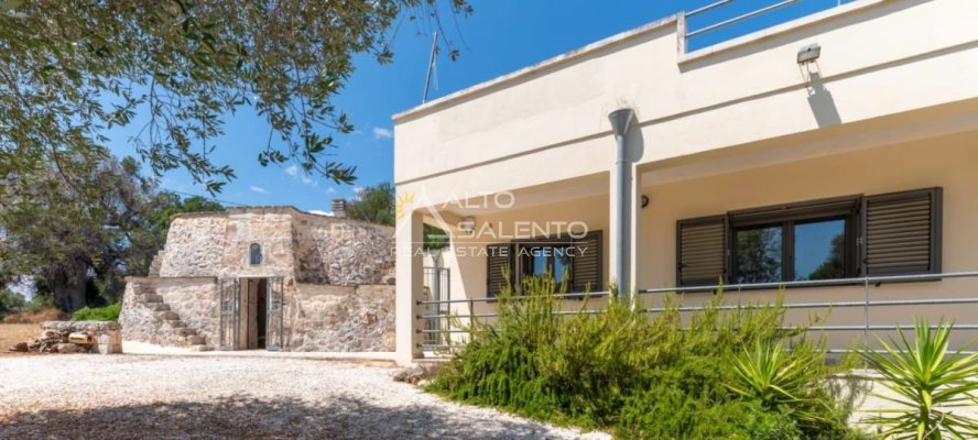 La proprietà combina perfettamente lo stile contemporaneo della villa con il fascino autentico del trullo in pietra, sapientemente ristrutturato per mantenere intatte le sue caratteristiche originali. Un connubio unico tra tradizione e modernità.