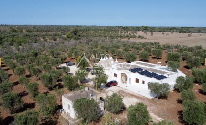 In un contesto riservato e panoramico alle porte di Carovigno, questa elegante villa di nuova costruzione unisce il comfort della modernità al fascino autentico di un trullo pugliese, creando una residenza luminosa, funzionale e perfettamente integrata nel paesaggio mediterraneo.