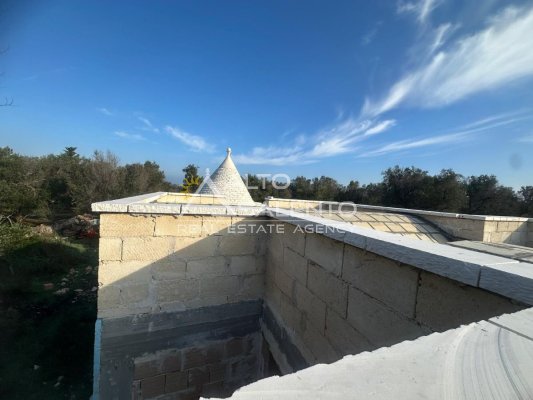 Immerso nella suggestiva campagna ostunese, in una zona tranquilla e riservata, sorge questo splendido trullo in fase di costruzione, con progetto approvato per una nuova abitazione tutta in pietra, completa di piscina privata e tutte le dotazioni tecnologiche più avanzate.