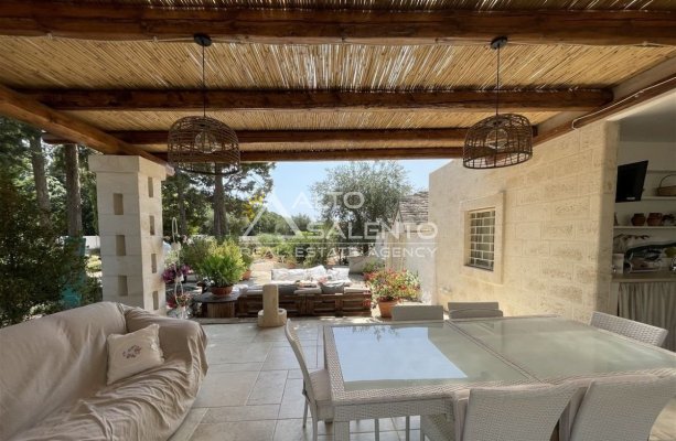 Un secondo pergolato con veranda, adiacente all’abitazione principale, dispone di predisposizione per cucina esterna, ideale per pranzi all’aperto.