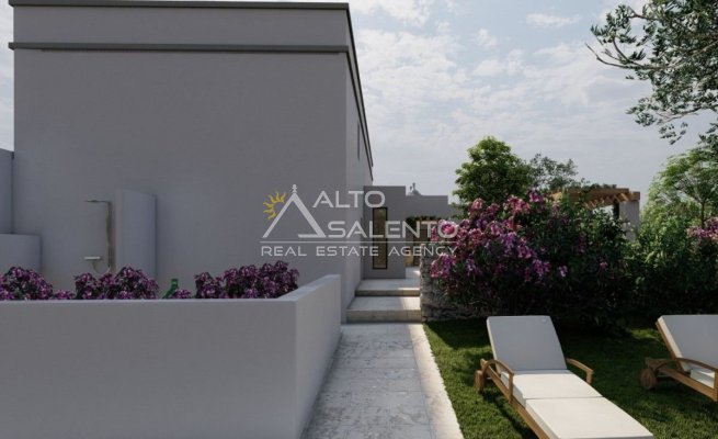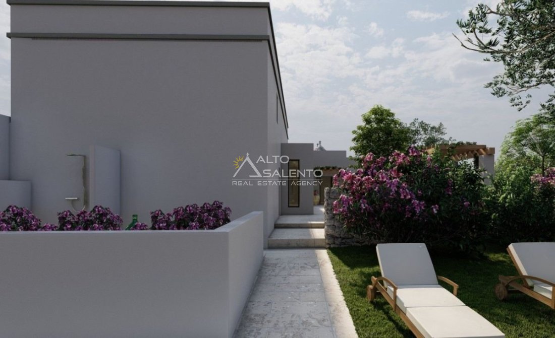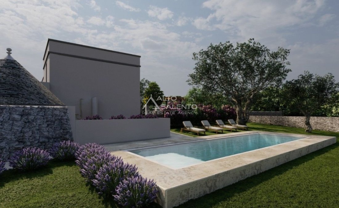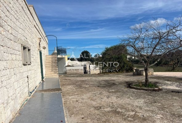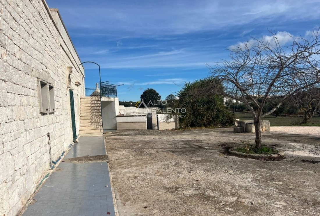 Il terreno pertinenziale si estende per circa 10.810 mq, caratterizzato da ulivi, alberi da frutto e ampie aree pianeggianti — ideale per la realizzazione di una piscina e per creare un giardino mediterraneo di grande fascino.