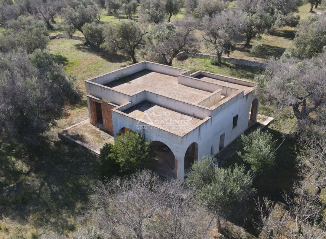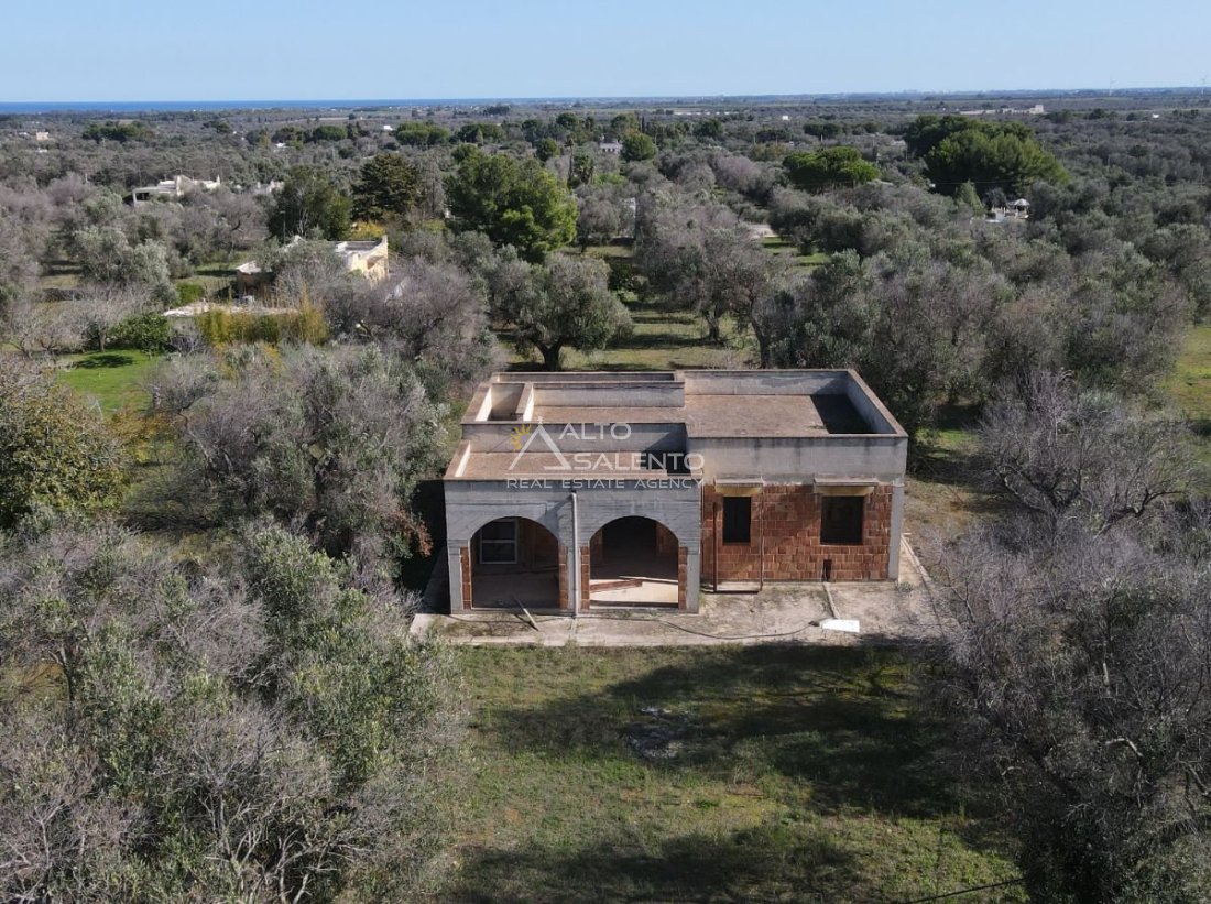In una splendida posizione collinare, immersa nella quiete della campagna pugliese, questa villa con vista mare rappresenta un’interessante opportunità per chi desidera personalizzare la propria casa nel cuore dell’Alto Salento.