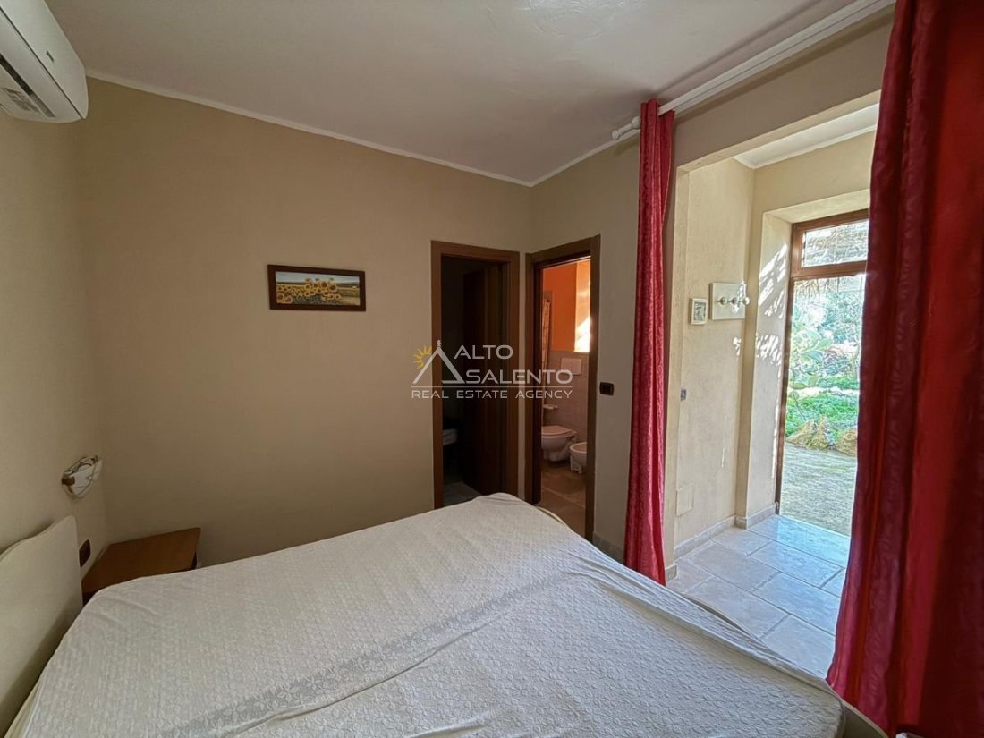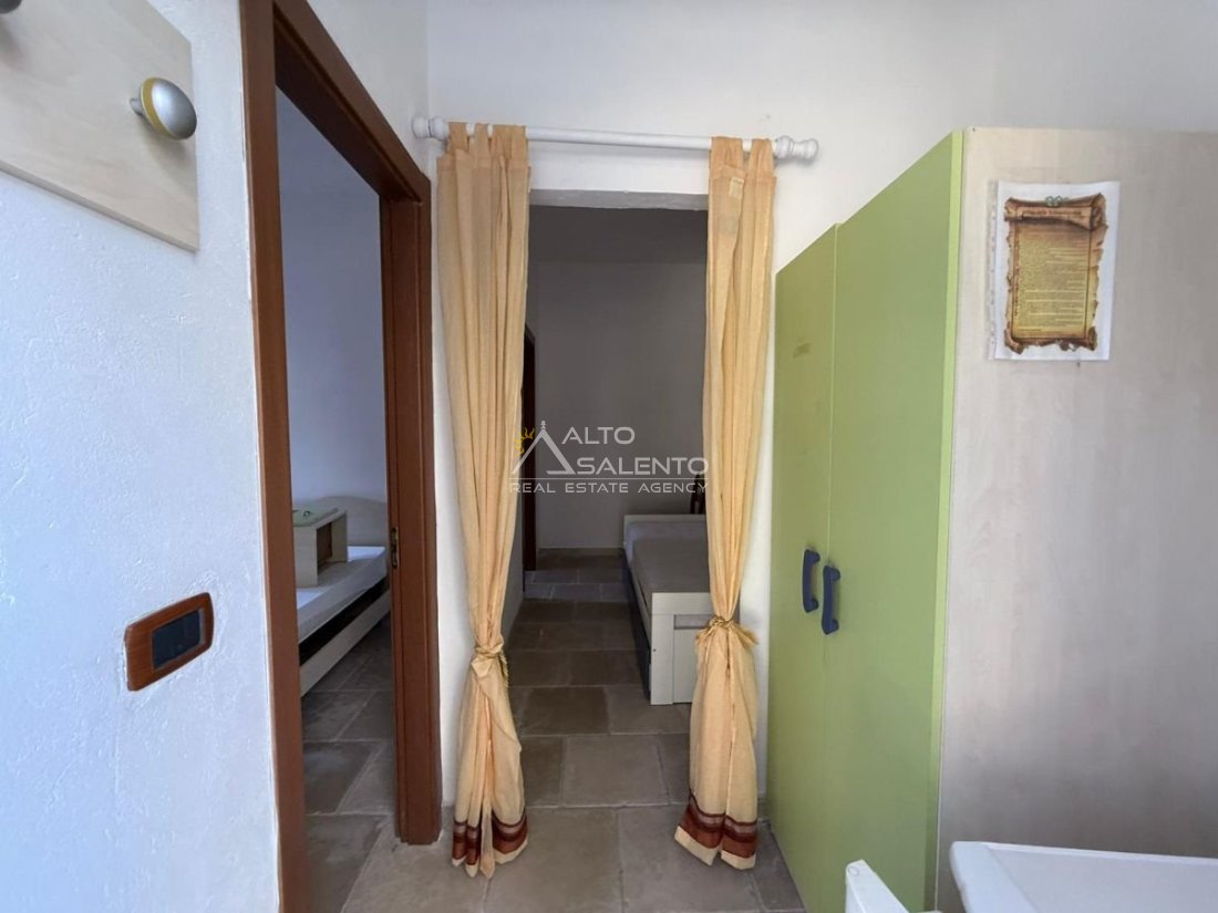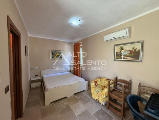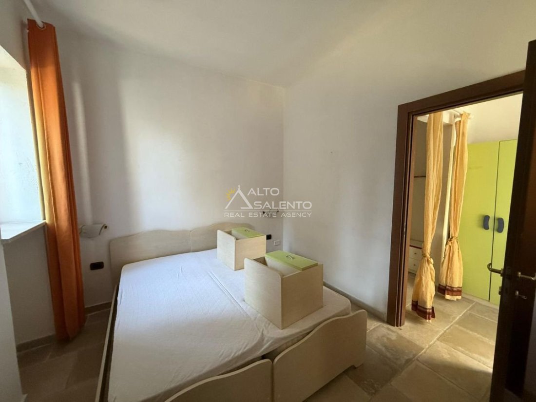 Gli ambienti, curati e luminosi, riflettono la semplicità elegante delle antiche case rurali pugliesi: volte in pietra, arredi essenziali, materiali naturali e dettagli autentici che richiamano la tradizione del territorio.