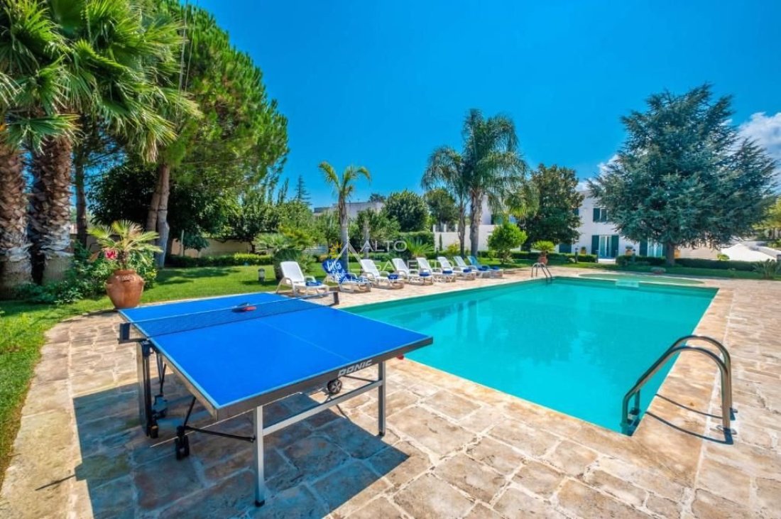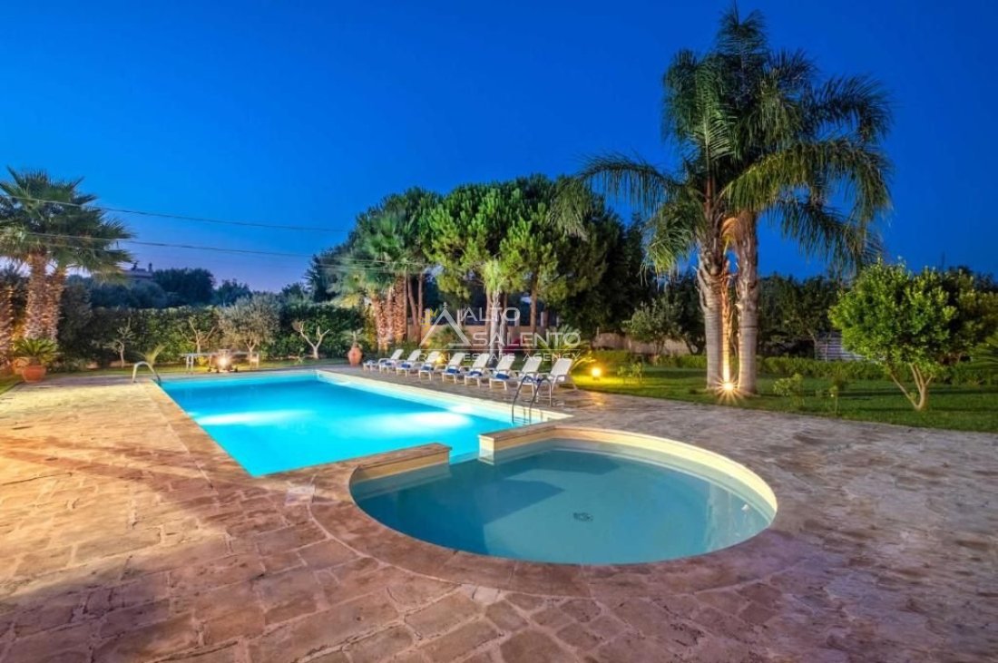 Immerso nella quiete della campagna pugliese, questo raffinato casale offre 260 mq di superficie complessiva, progettati per coniugare fascino autentico, tecnologia moderna e totale comfort abitativo. La proprietà è circondata da un ampio giardino curato nei dettagli, arricchito da piscina privata, mini piscina idromassaggio e zone relax perfettamente attrezzate.