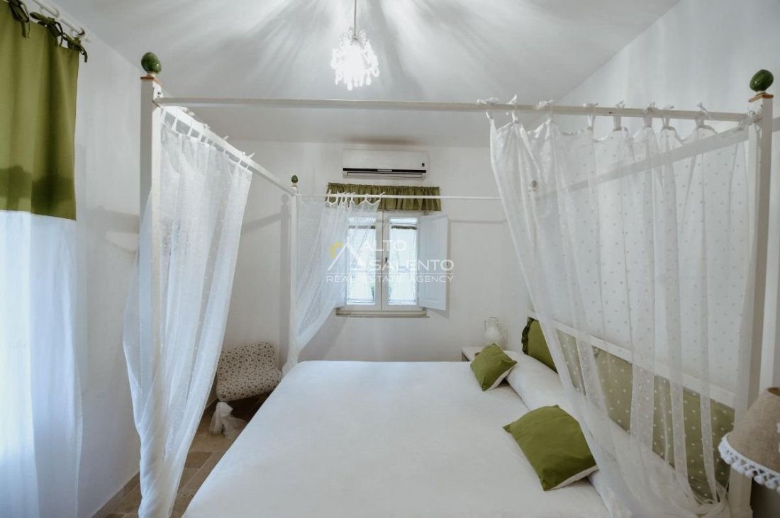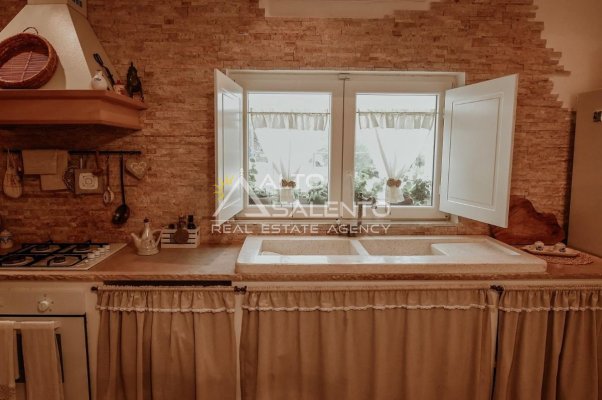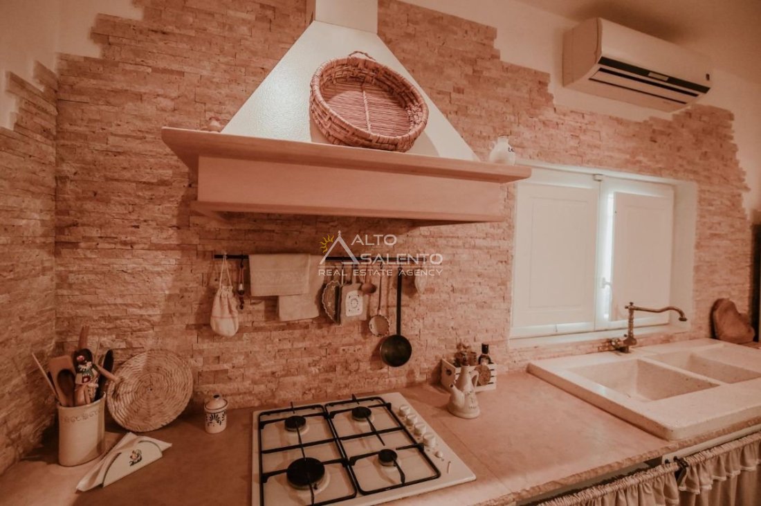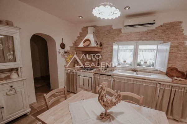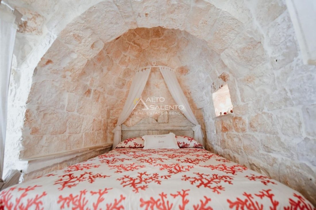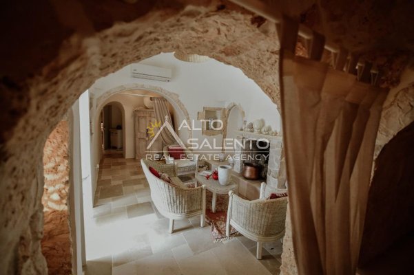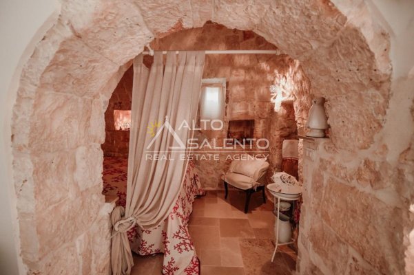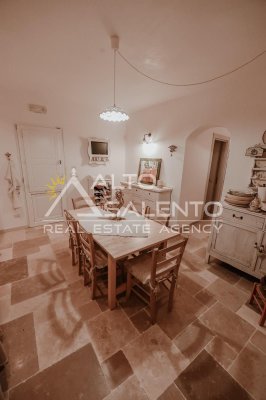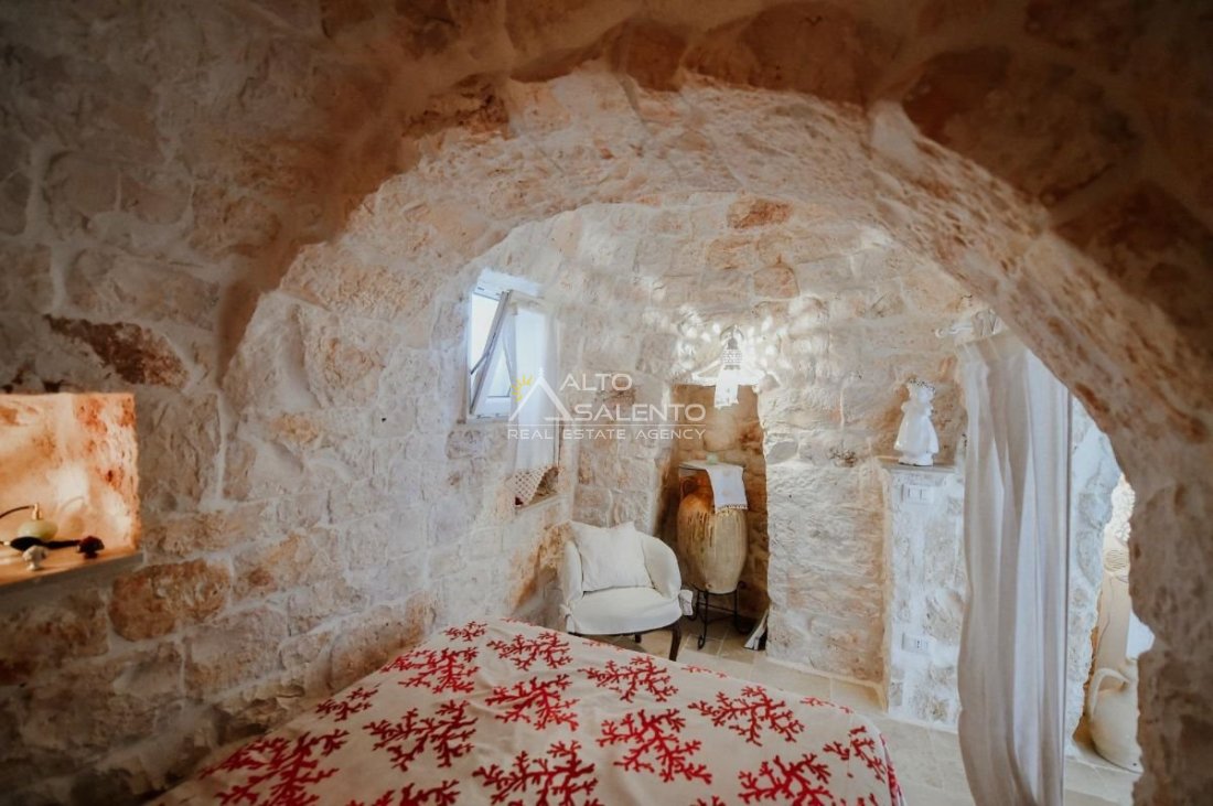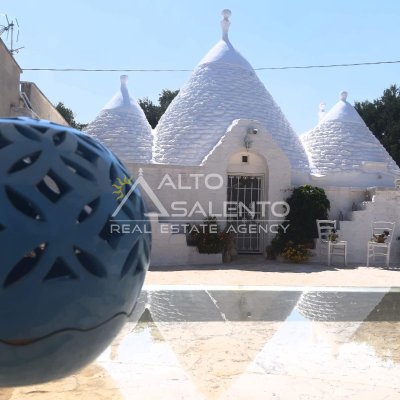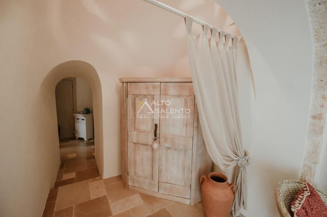 La proprietà offre 190 mq commerciali e 137 mq calpestabili, distribuiti in 3 camere da letto, una cameretta e 2 bagni, ideali per chi desidera spazio, privacy e atmosfera tipica del territorio. Il trullo e la zona ampliata si fondono perfettamente grazie a pregiate rifiniture in pietra locale.