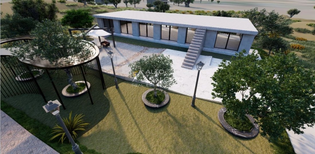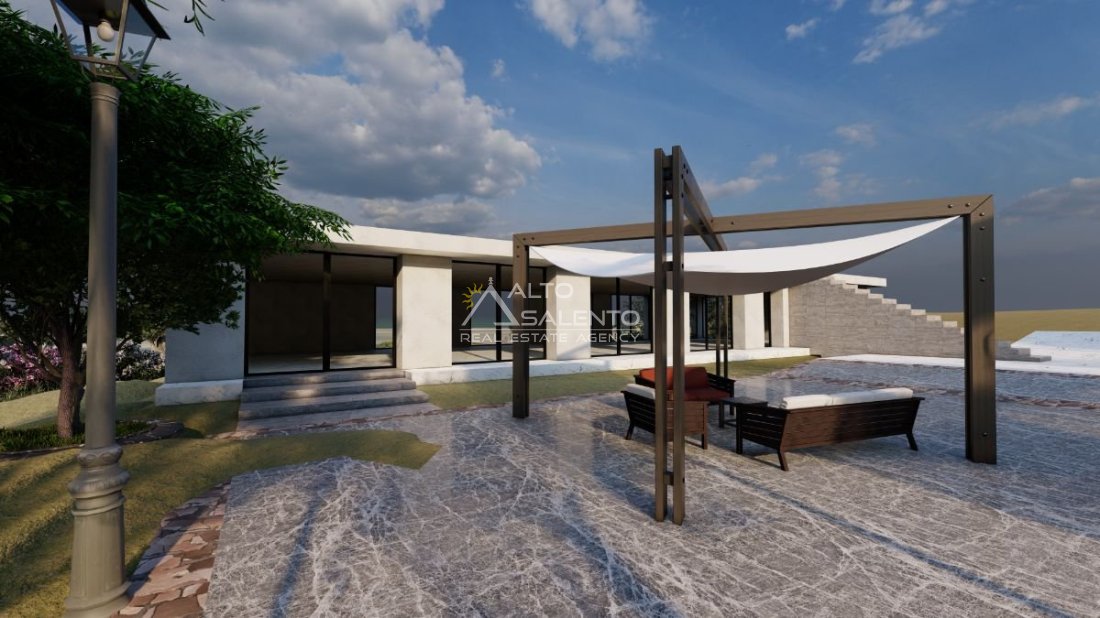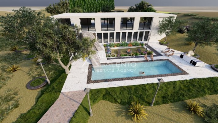 Il progetto in fase di approvazione prevede la realizzazione di una villa moderna sviluppata su due livelli, con un design contemporaneo e ampie superfici vetrate per valorizzare la vista mare.