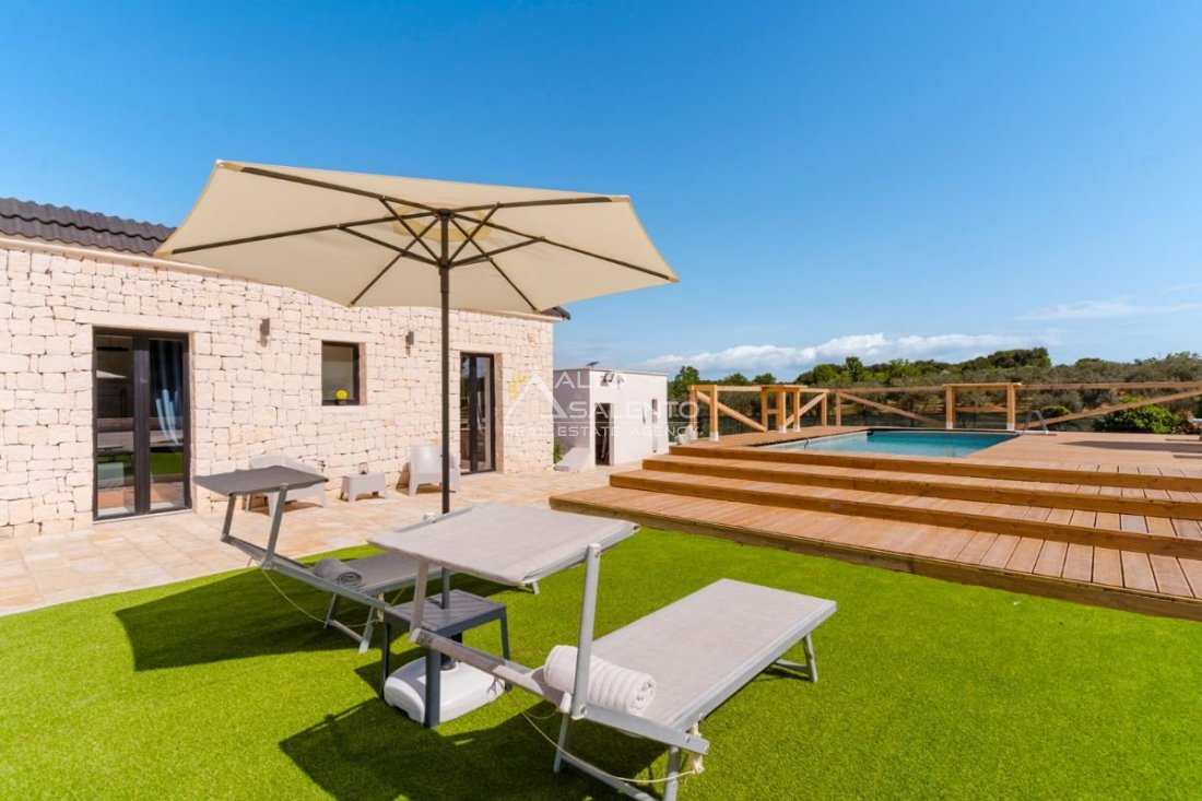 Nel cuore autentico della Valle d’Itria, immersa nella quiete della campagna di Ceglie Messapica, sorge questa elegante villa con trullo indipendente e piscina, recentemente ristrutturata. Una dimora di charme che unisce architettura tradizionale pugliese e design contemporaneo, offrendo ambienti accoglienti, funzionali e perfettamente integrati nel paesaggio.