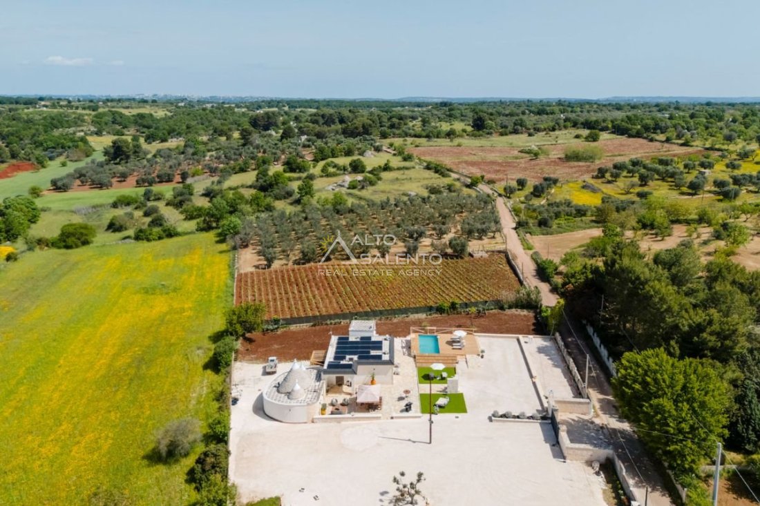 La villa è circondata dalla tipica vegetazione della Valle d’Itria e gode di un contesto riservato e silenzioso, pur restando ben collegata ai principali centri di interesse della zona. Il perfetto equilibrio tra tradizione e modernità rende questa proprietà una soluzione versatile e senza tempo.