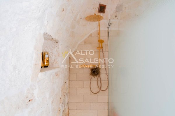 Completa la proprietà un trullo indipendente, accessibile dall’esterno, che ospita una terza camera matrimoniale con bagno privato completo, ideale per garantire privacy a ospiti o familiari.