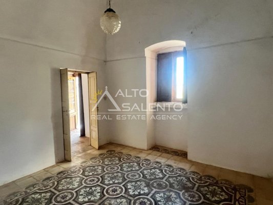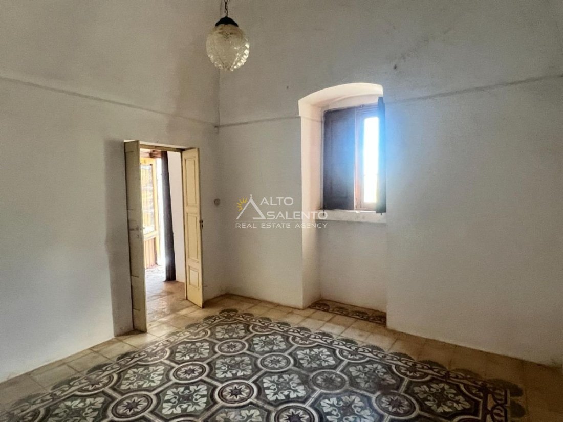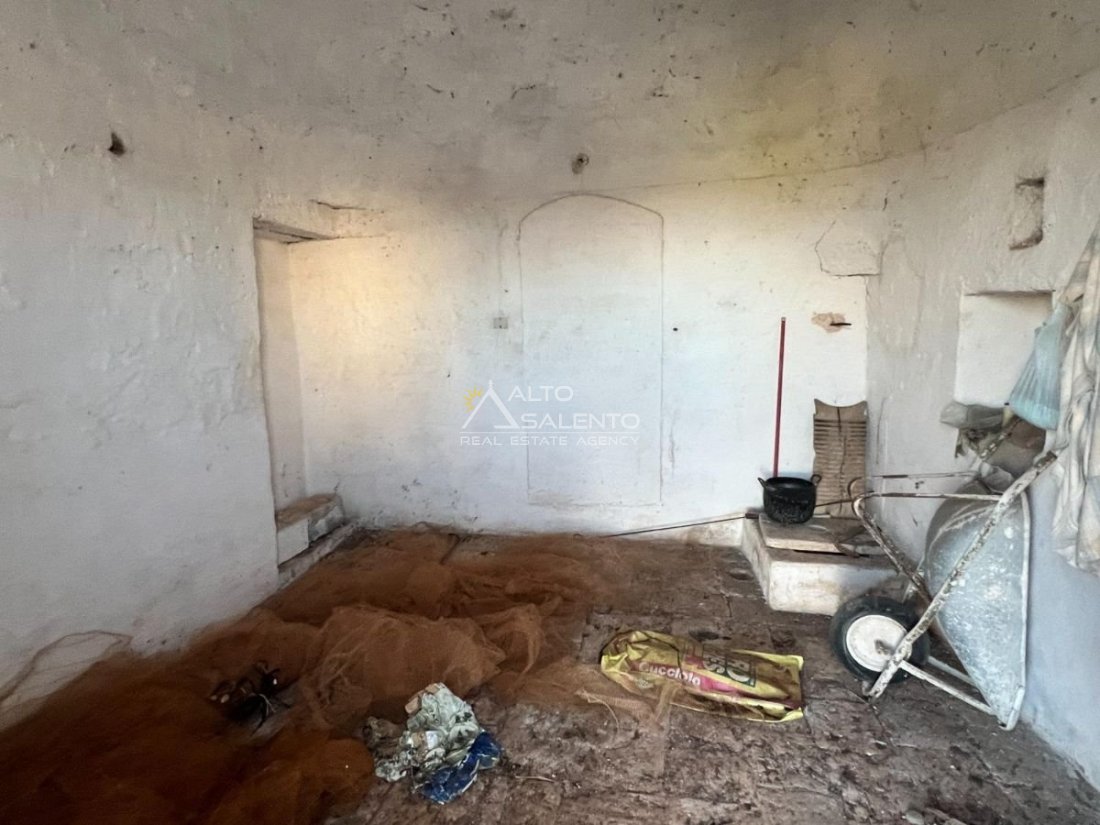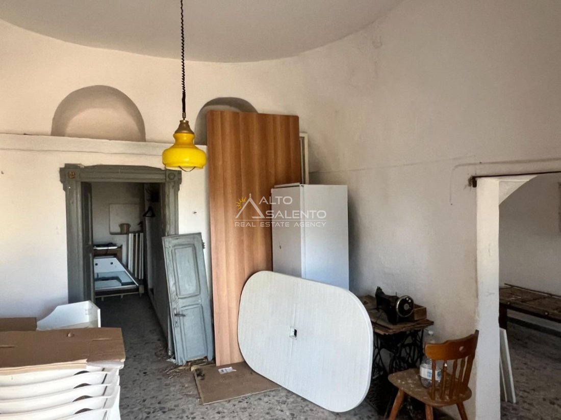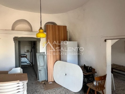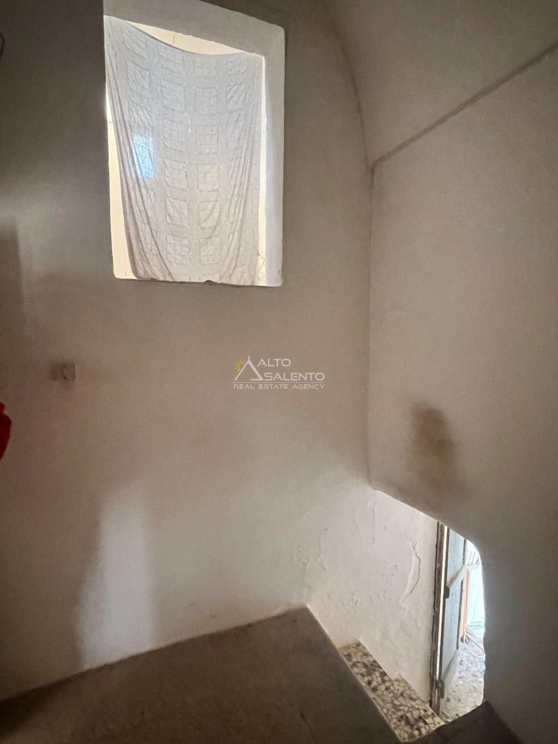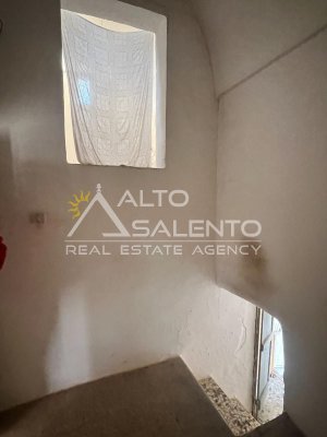 L’accesso dalla zona dei trulli conduce a una cucina dal forte impatto scenografico, caratterizzata da eleganti volte a botte. Una scalinata in muratura accompagna al livello superiore, dove un ampio disimpegno con volte a botte distribuisce ulteriori ambienti, mantenendo coerenza stilistica e armonia architettonica.