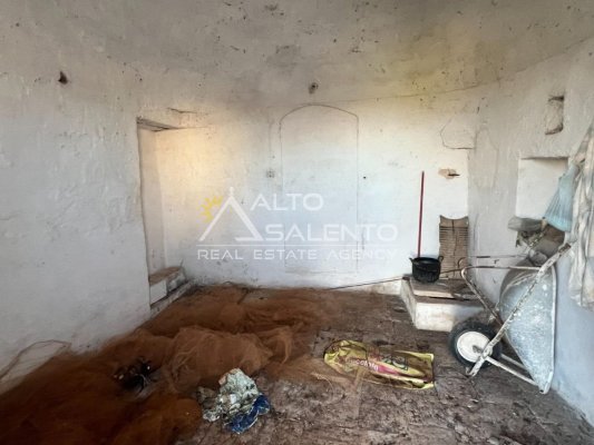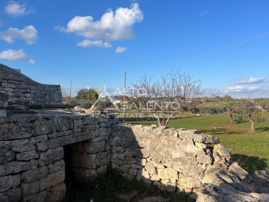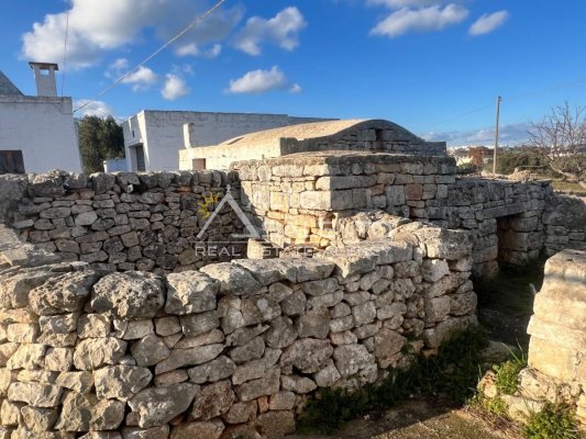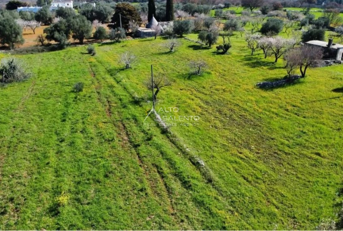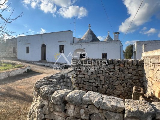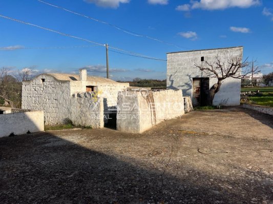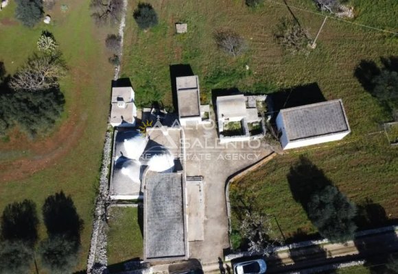 La proprietà ricade nell’agro di Ostuni ed è composta da un antico casolare con trulli, una corte centrale su cui si affacciano tre lamie di diversa dimensione e altezza, oltre a un tradizionale forno a legna. Il tutto è circondato da un terreno di poco superiore a un ettaro, che garantisce privacy e continuità visiva con il paesaggio circostante.