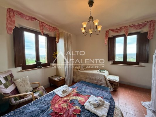 Casale storico ristrutturato a Città della Pieve, situato nella campagna umbra al confine con la Toscana. L’immobile, risalente alla fine del XVIII secolo, si sviluppa su una superficie complessiva di circa 435 mq e si inserisce in un contesto rurale riservato con vista panoramica a 360° sulla campagna e sul Monte Cetona. La ristrutturazione ha preservato le caratteristiche architettoniche originarie, integrandole con soluzioni funzionali per l’uso residenziale o ricettivo.