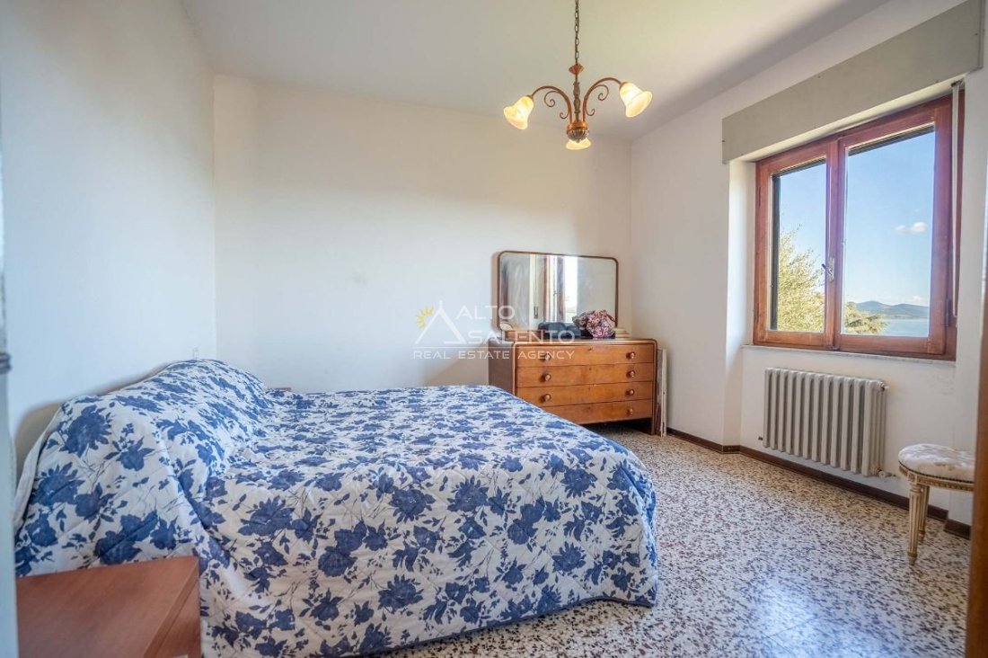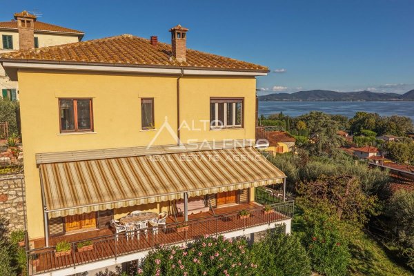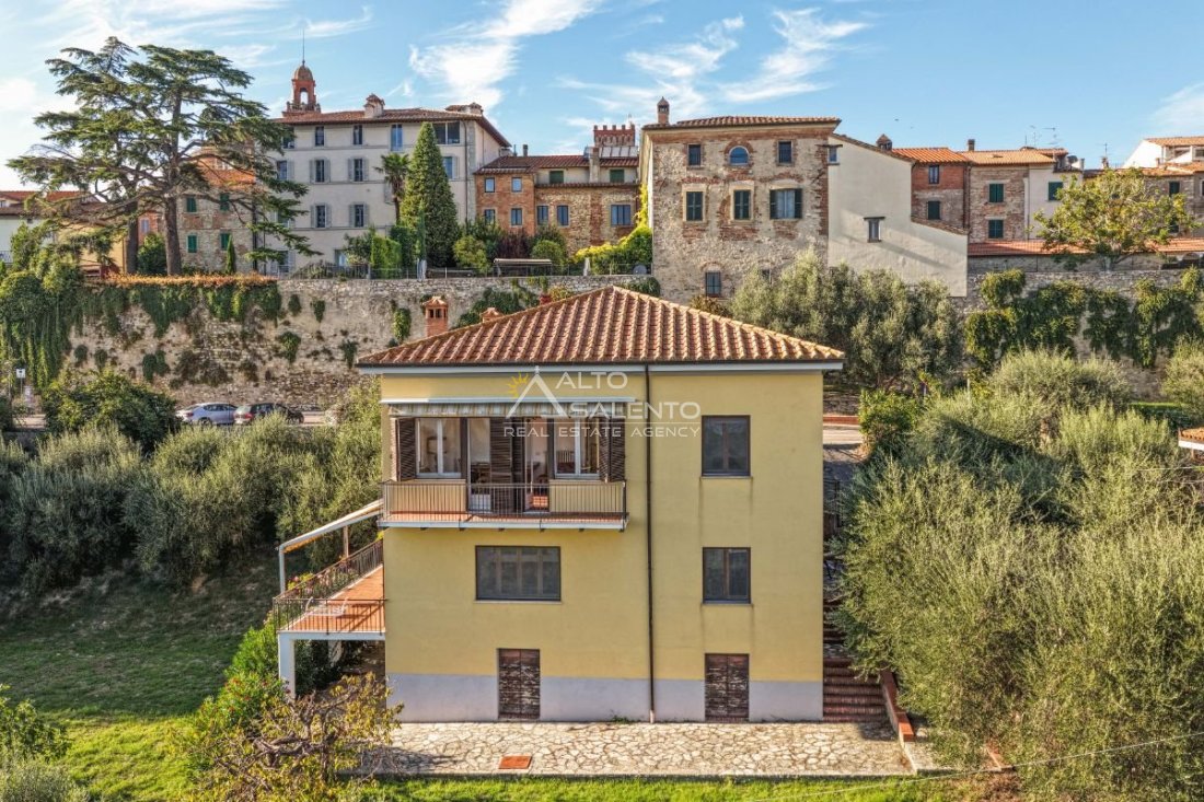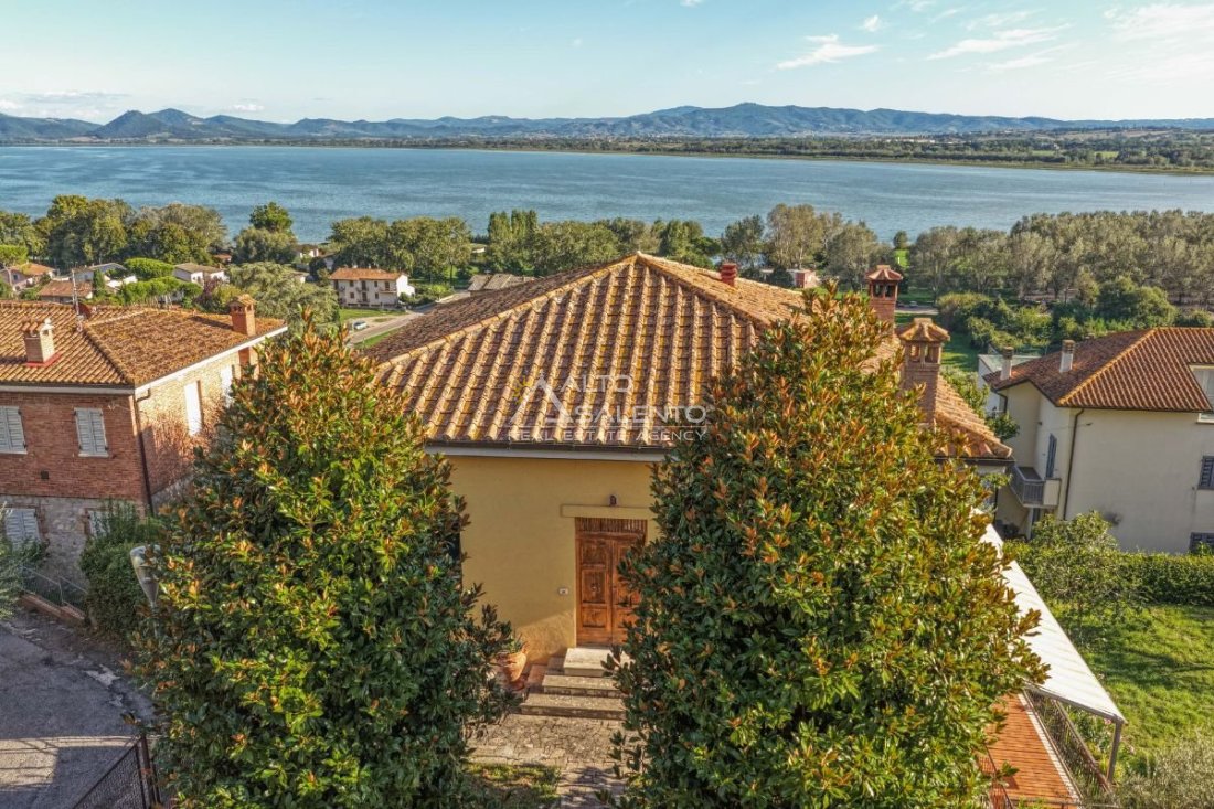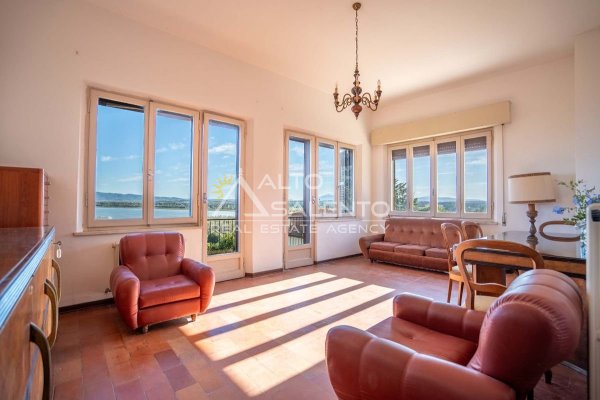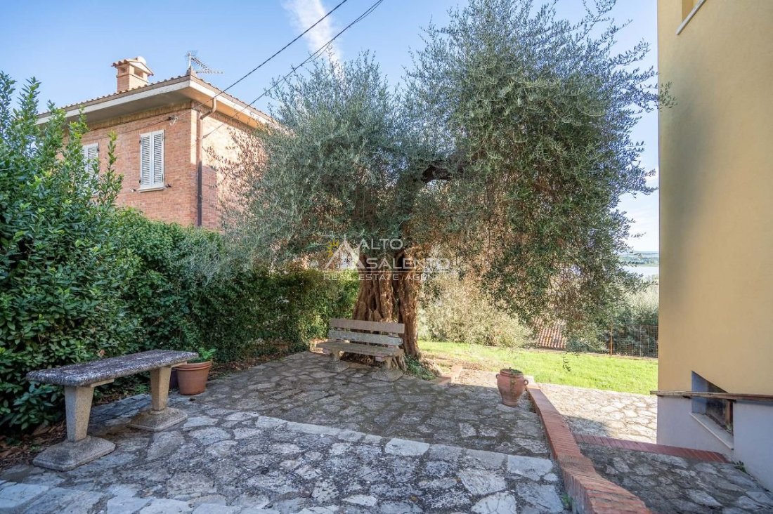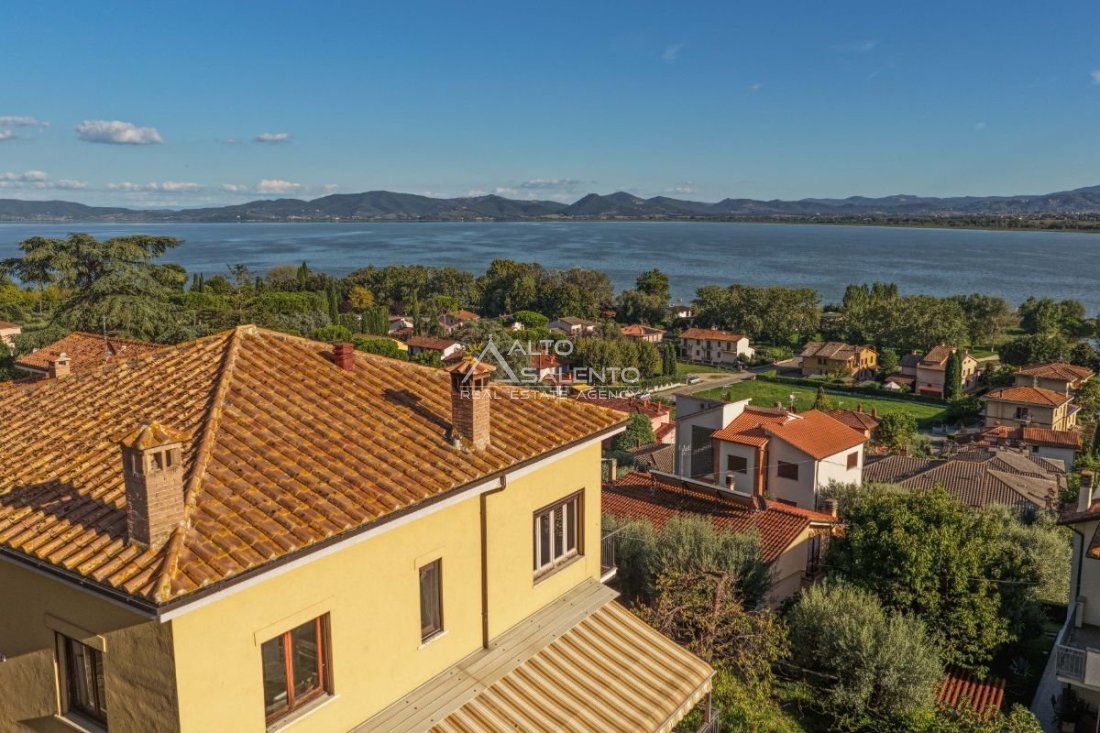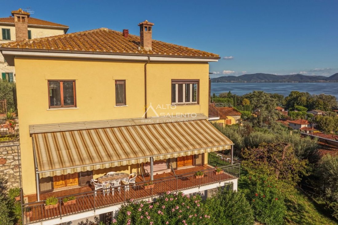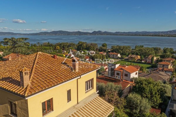 Villa indipendente a Castiglione del Lago con vista Lago Trasimeno, situata all’interno del borgo storico, in una delle vie caratteristiche del centro abitato. L’immobile è circondato da giardino privato di circa 1.100 mq e si sviluppa su tre livelli, con suddivisione in due appartamenti indipendenti, ciascuno dotato di ingresso autonomo. La configurazione risulta funzionale sia per utilizzo residenziale che per destinazione turistico-ricettiva.