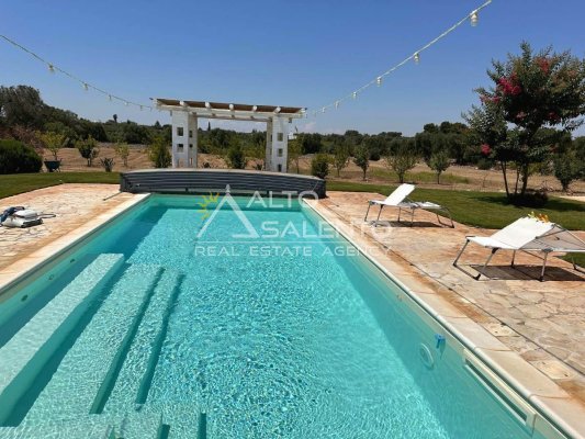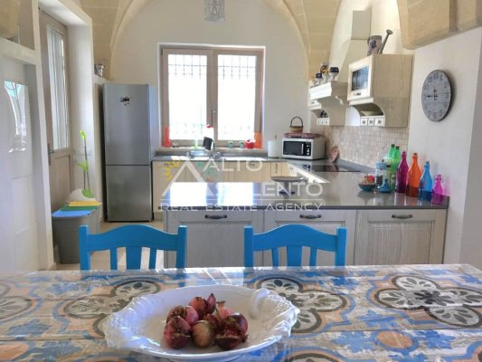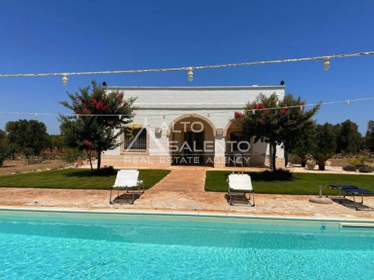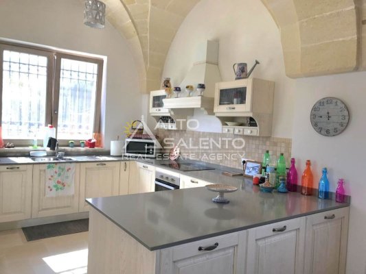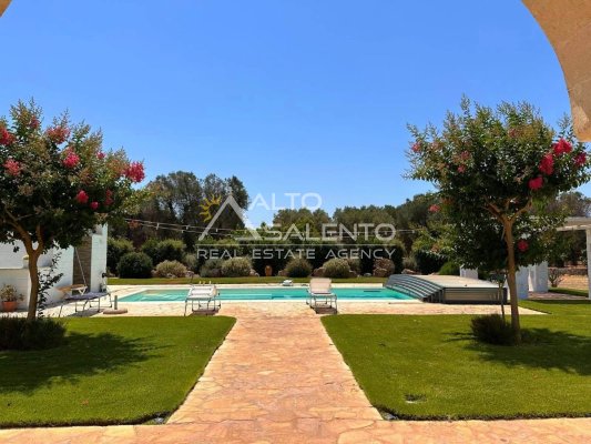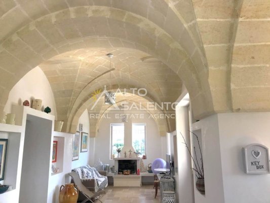 In posizione riservata e immersa nella quiete della campagna dell’Alto Salento, sorge questa villa di pregio, inserita su un lotto di circa 1 ettaro, caratterizzata da autentiche volte a botte e volte a stella, espressione dell’architettura tradizionale pugliese.