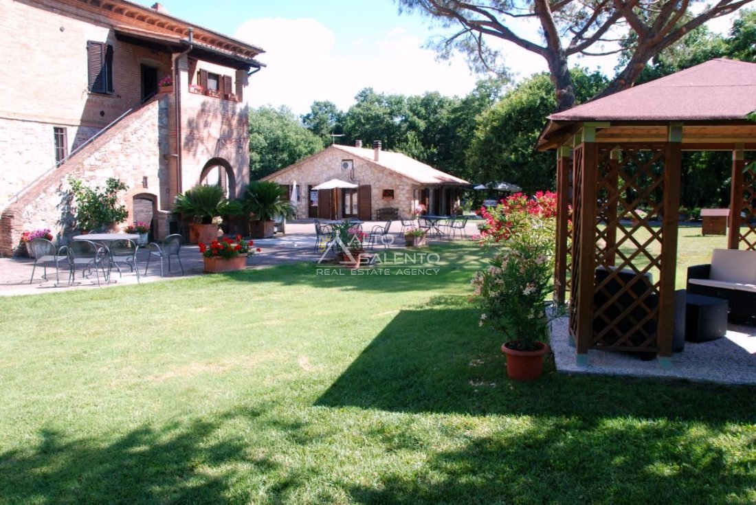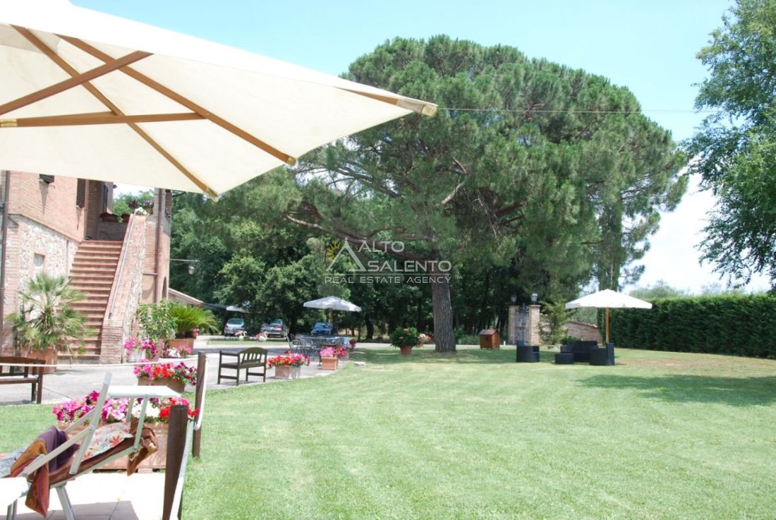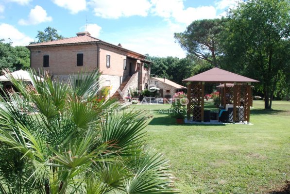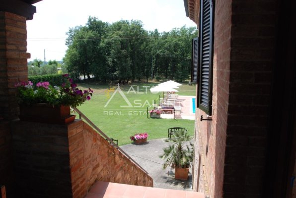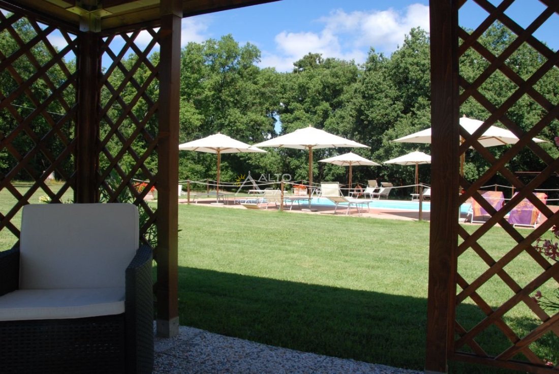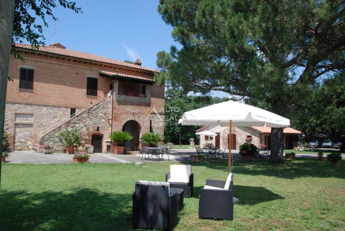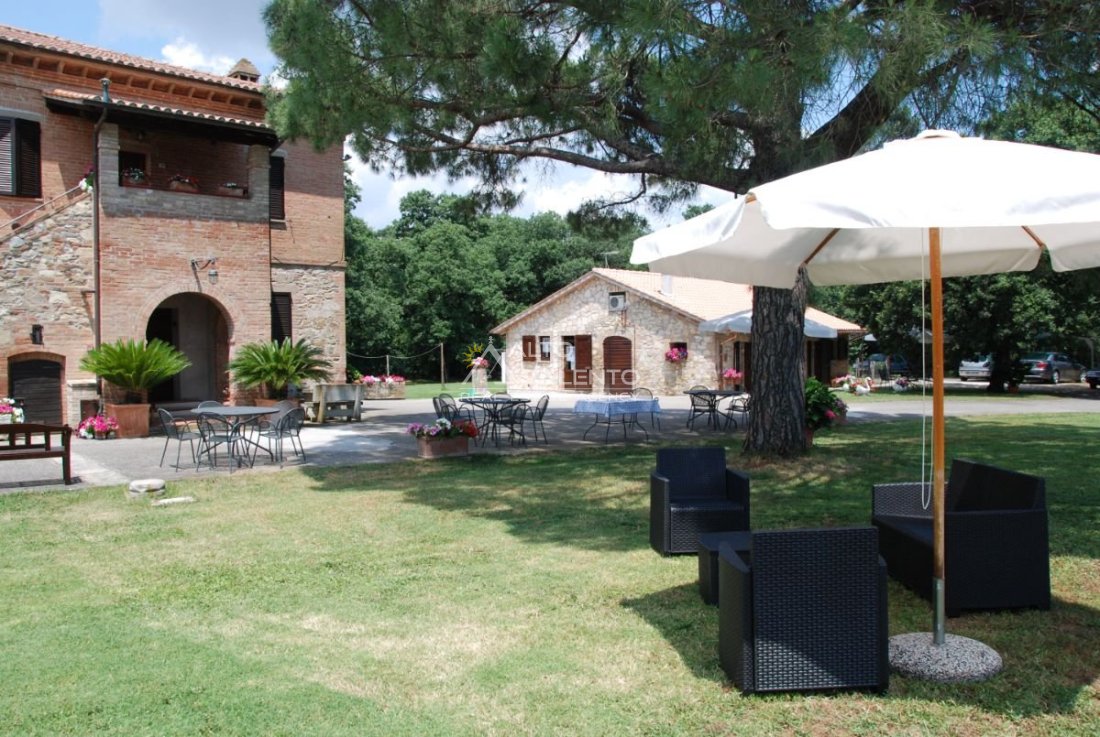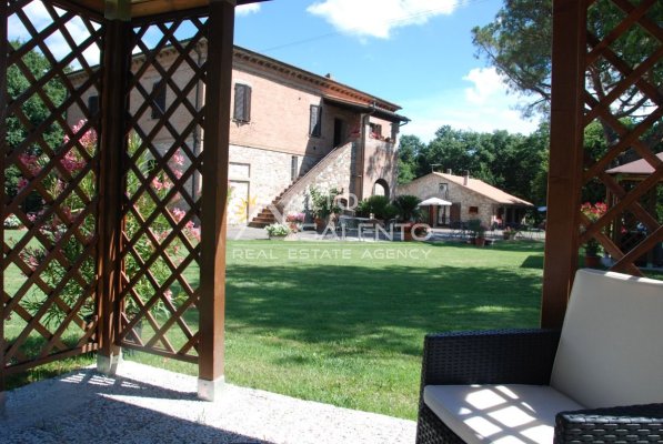 Il terreno circostante contribuisce alla definizione di un contesto riservato, con schermatura naturale e continuità paesaggistica tipica dell’area del Lago Trasimeno.