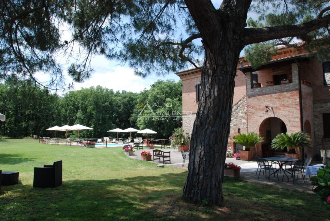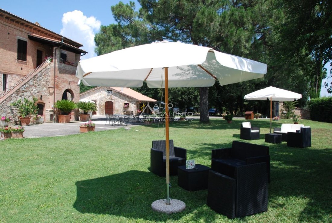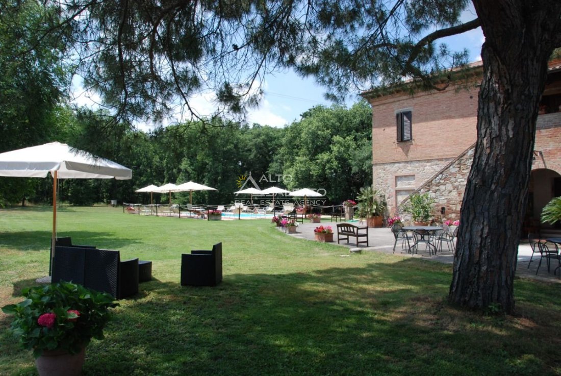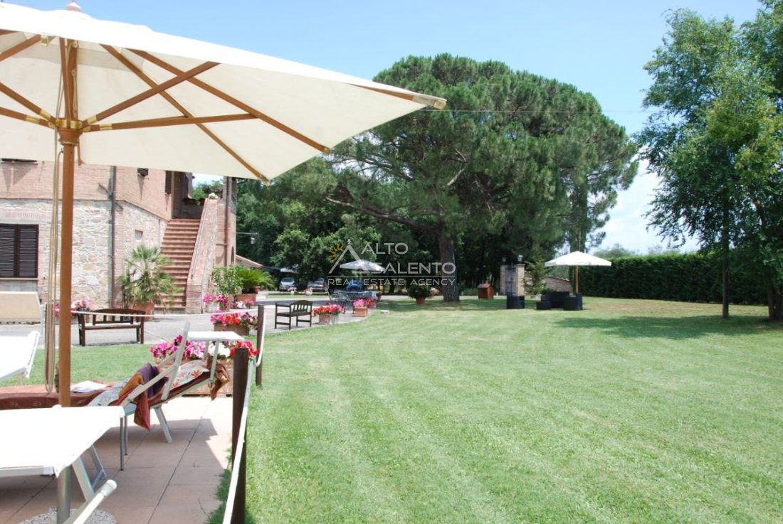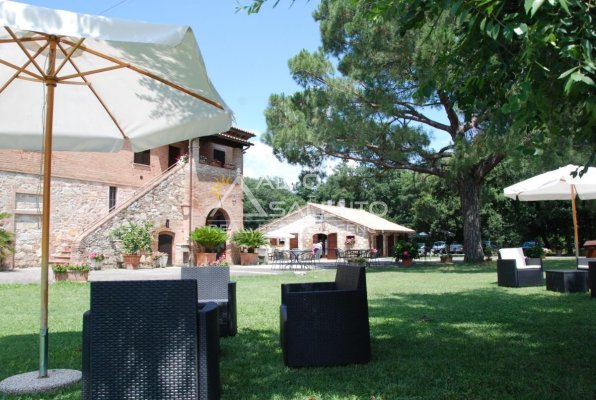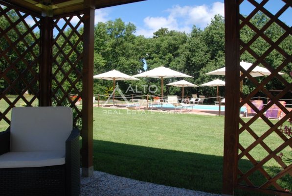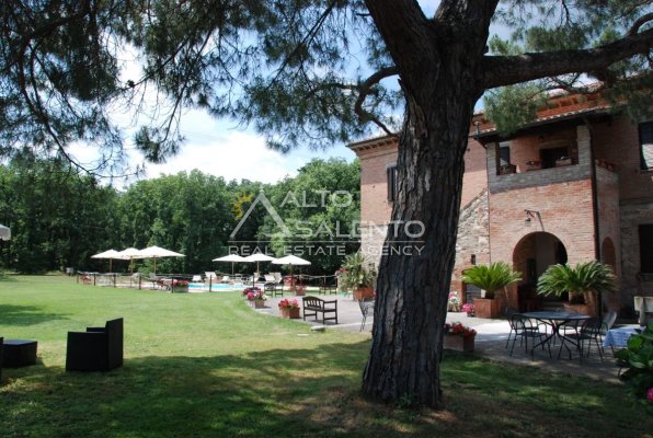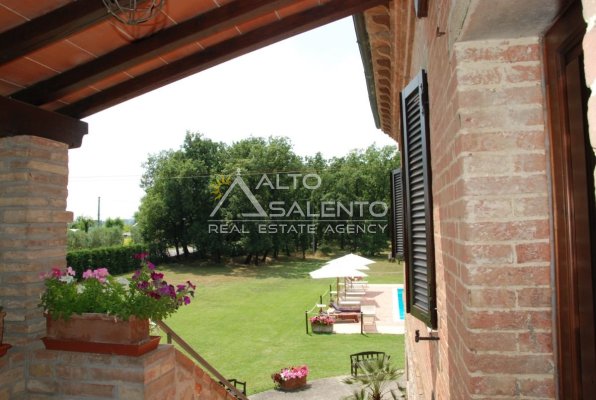 Il terreno circostante contribuisce alla definizione di un contesto riservato, con schermatura naturale e continuità paesaggistica tipica dell’area del Lago Trasimeno.