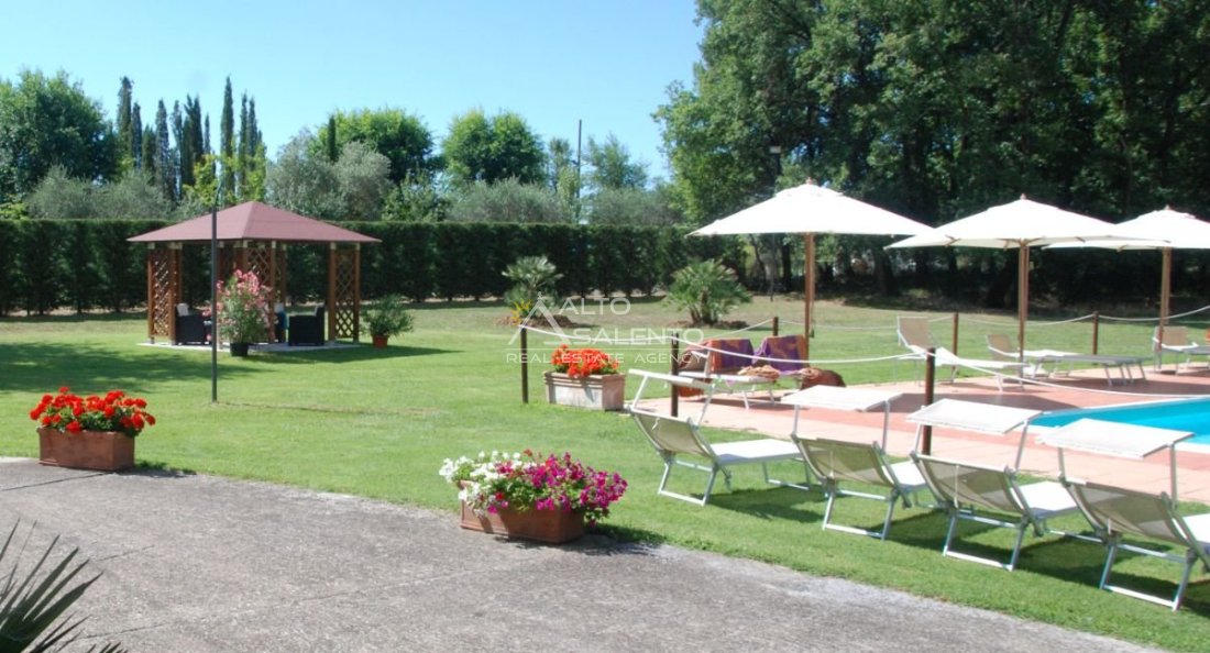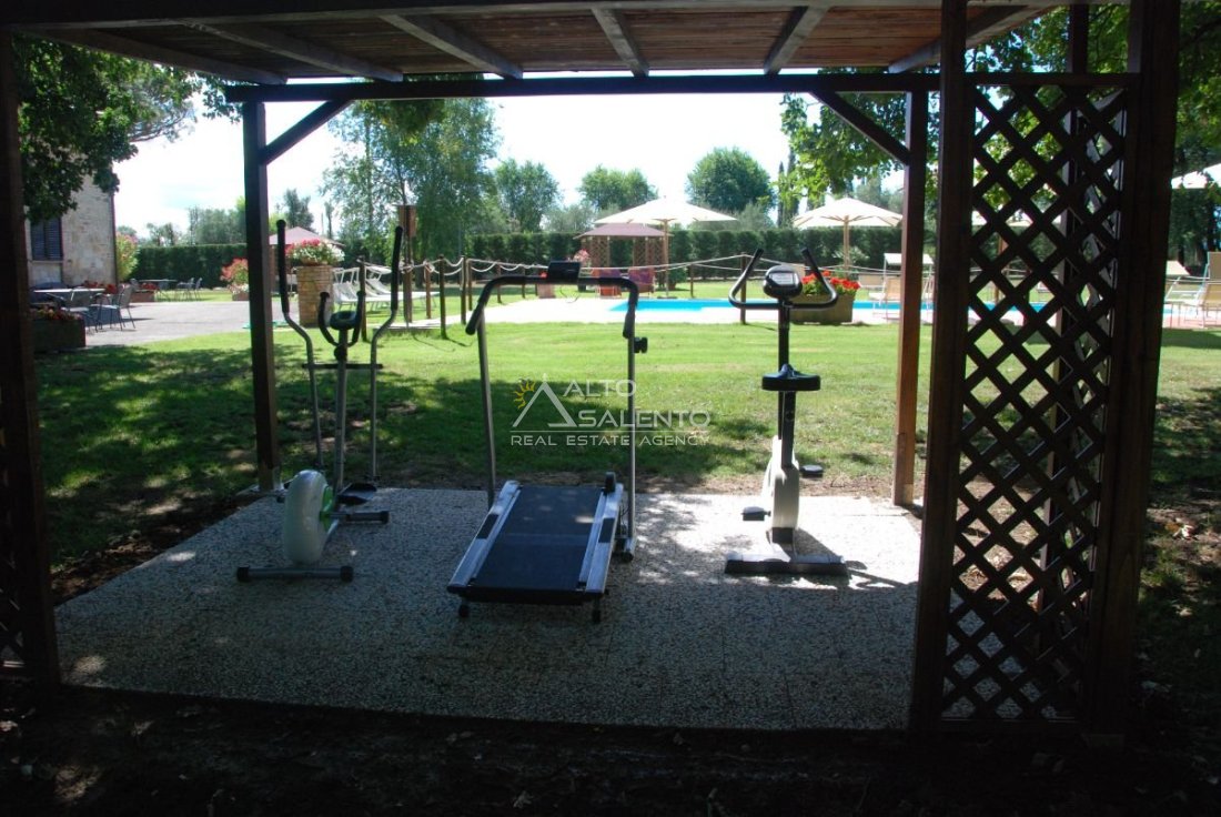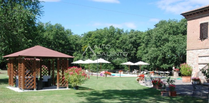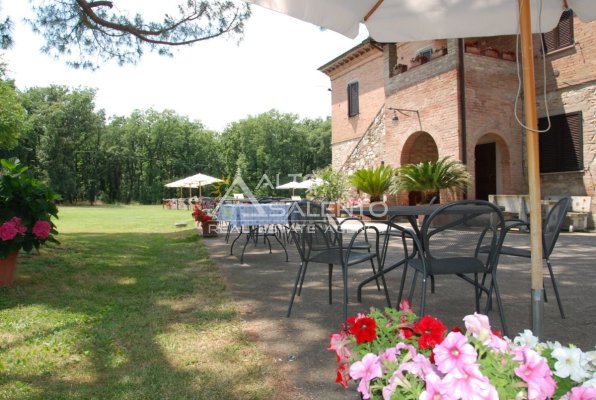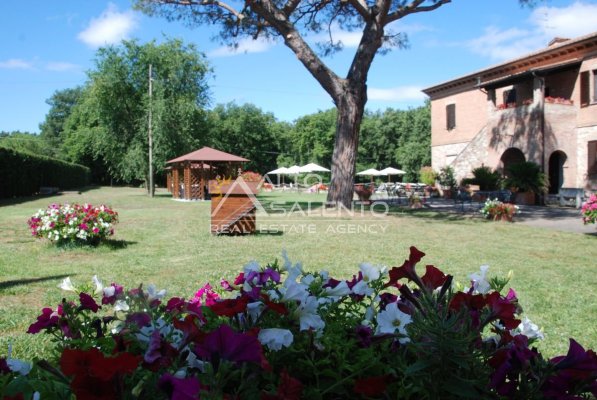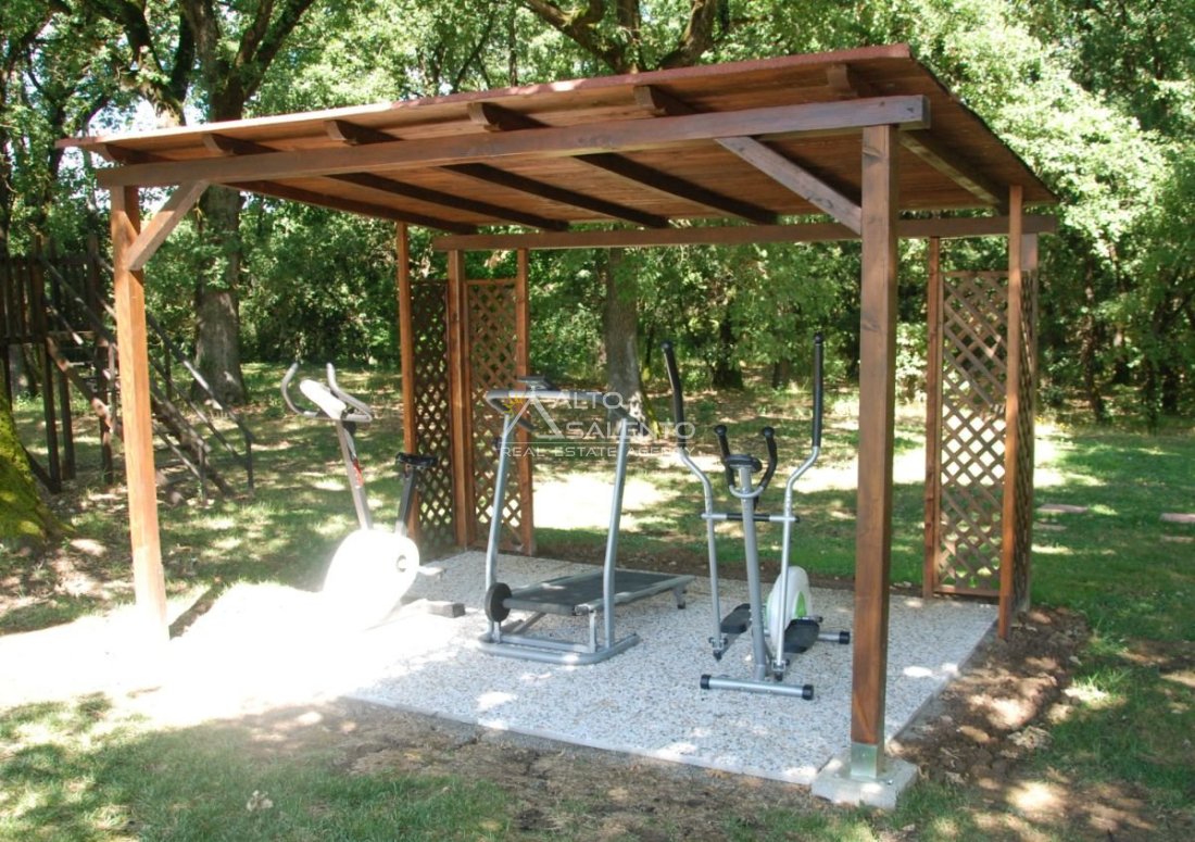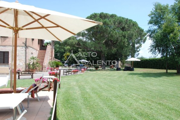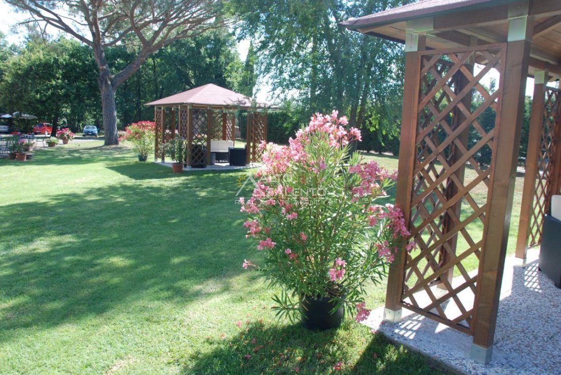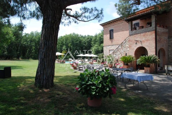 Il terreno circostante contribuisce alla definizione di un contesto riservato, con schermatura naturale e continuità paesaggistica tipica dell’area del Lago Trasimeno.