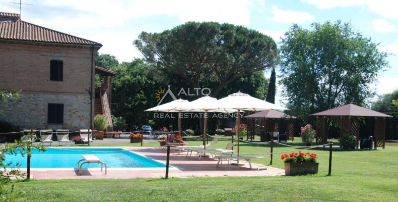 Casale in pietra e mattoni situato nelle colline umbre, a breve distanza dal confine tra Umbria e Toscana, in zona rurale a pochi chilometri da Castiglione del Lago. L’immobile è inserito all’interno di un contesto paesaggistico vincolato, caratterizzato da elevata naturalità e bassa densità edilizia.