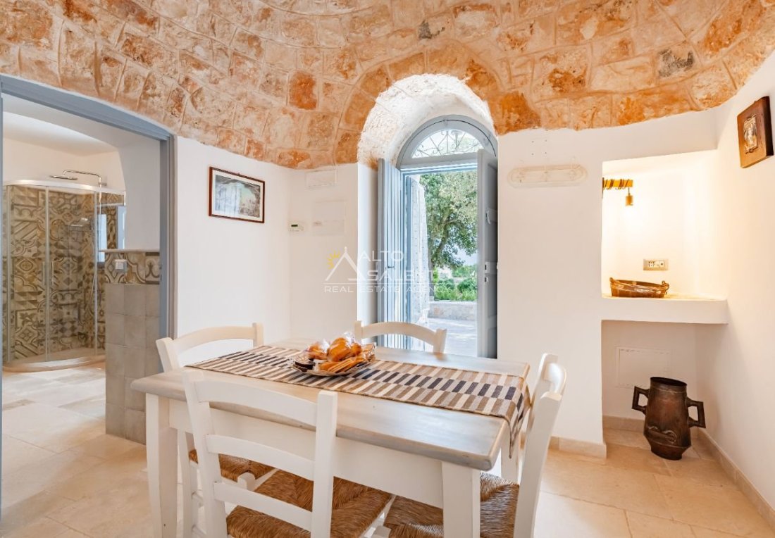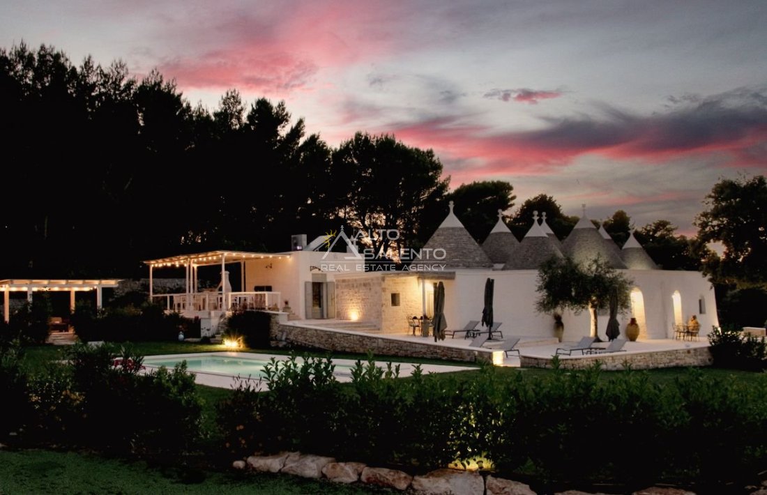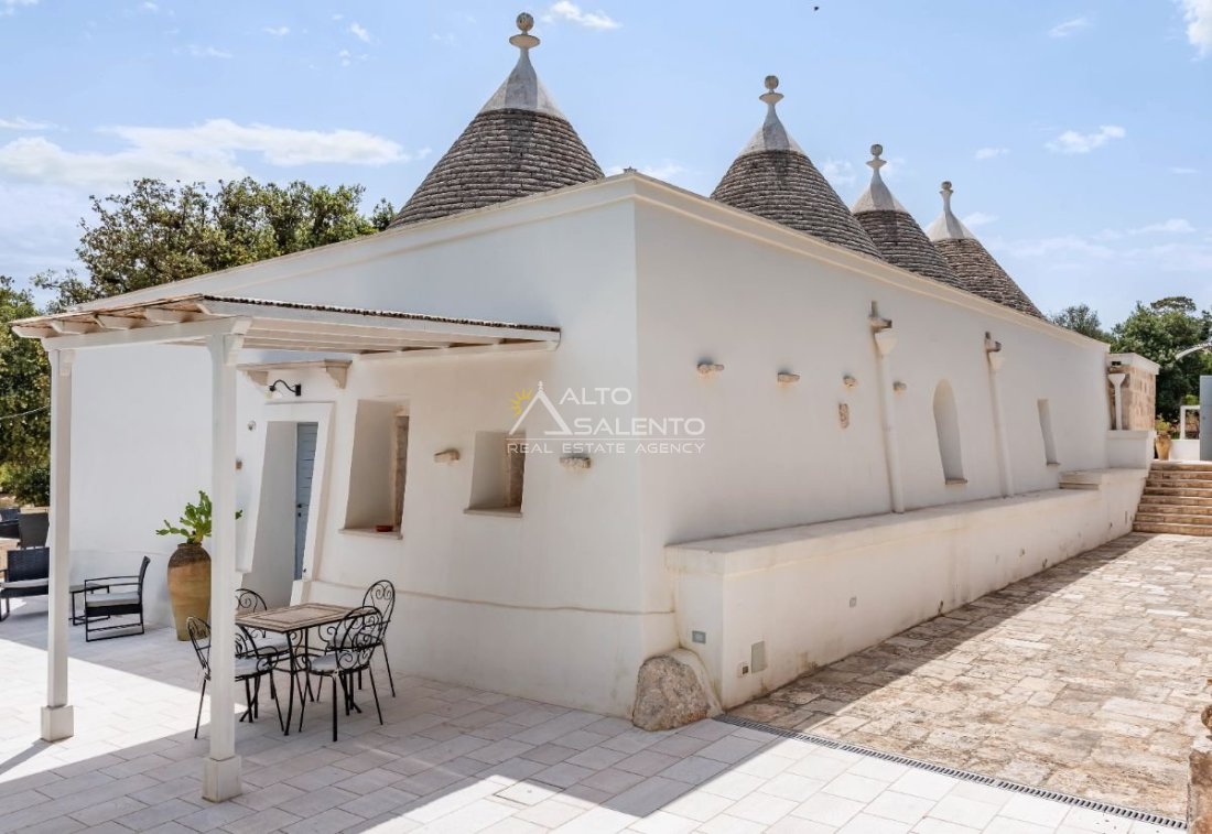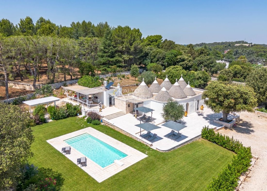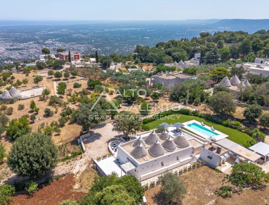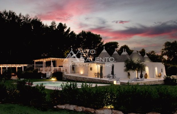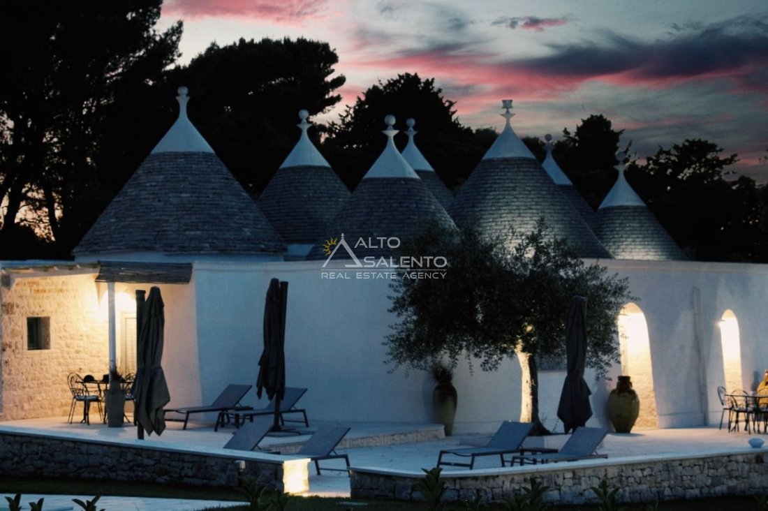 Questa dimora storica situata nella prestigiosa cornice della Selva di Fasano rappresenta un esempio magistrale di recupero architettonico. La proprietà, attualmente adibita a B&B di charme, si compone di un complesso di sette trulli conici finemente restaurati, che fondono l'autenticità della pietra pugliese con il comfort di una residenza di lusso. Con una superficie interna di circa 140 mq, la struttura è immersa in un contesto paesaggistico di rara bellezza, garantendo massima privacy e un'atmosfera d'altri tempi.