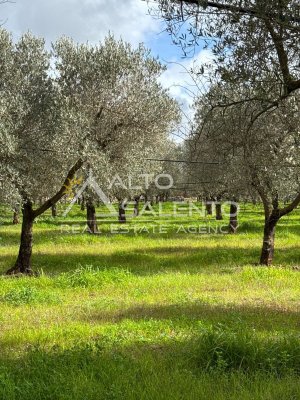 La proprietà è immersa in un terreno agricolo pianeggiante di circa 27.294 mq, impreziosito da circa 700 piante di ulivo di diverse varietà, ben distribuite e produttive.