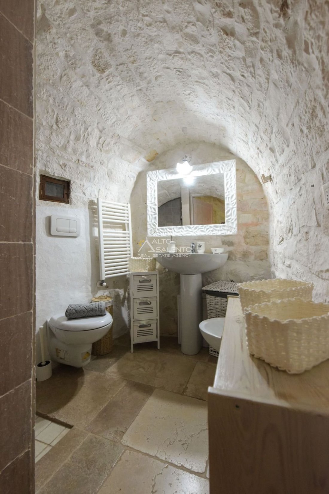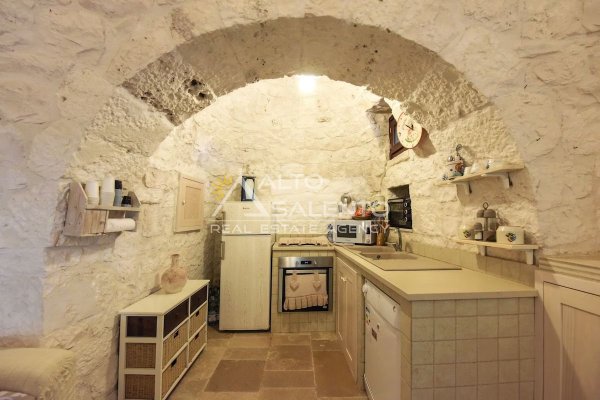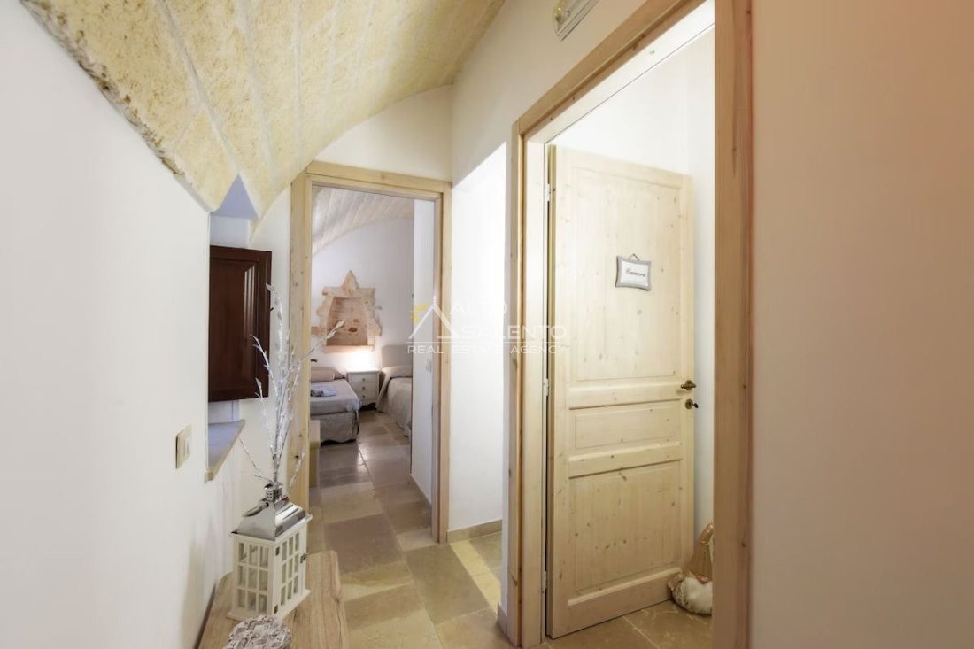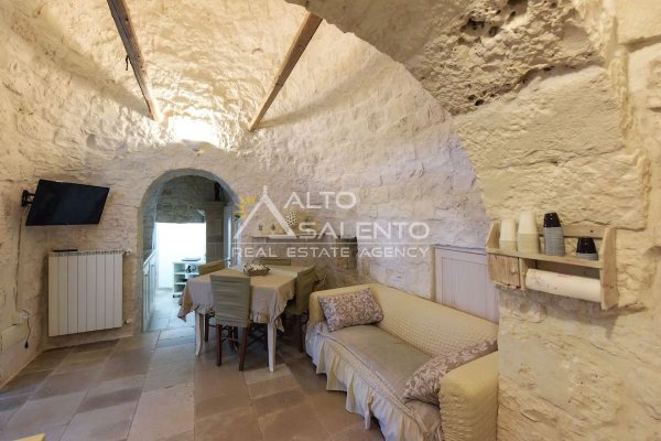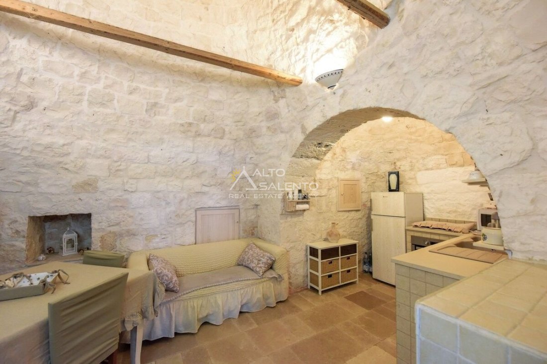 La superficie complessiva è di circa 125 mq, distribuiti in modo funzionale e accogliente. Gli ambienti interni conservano elementi tradizionali come la pavimentazione in chianche, valorizzata da finiture curate e materiali di qualità.