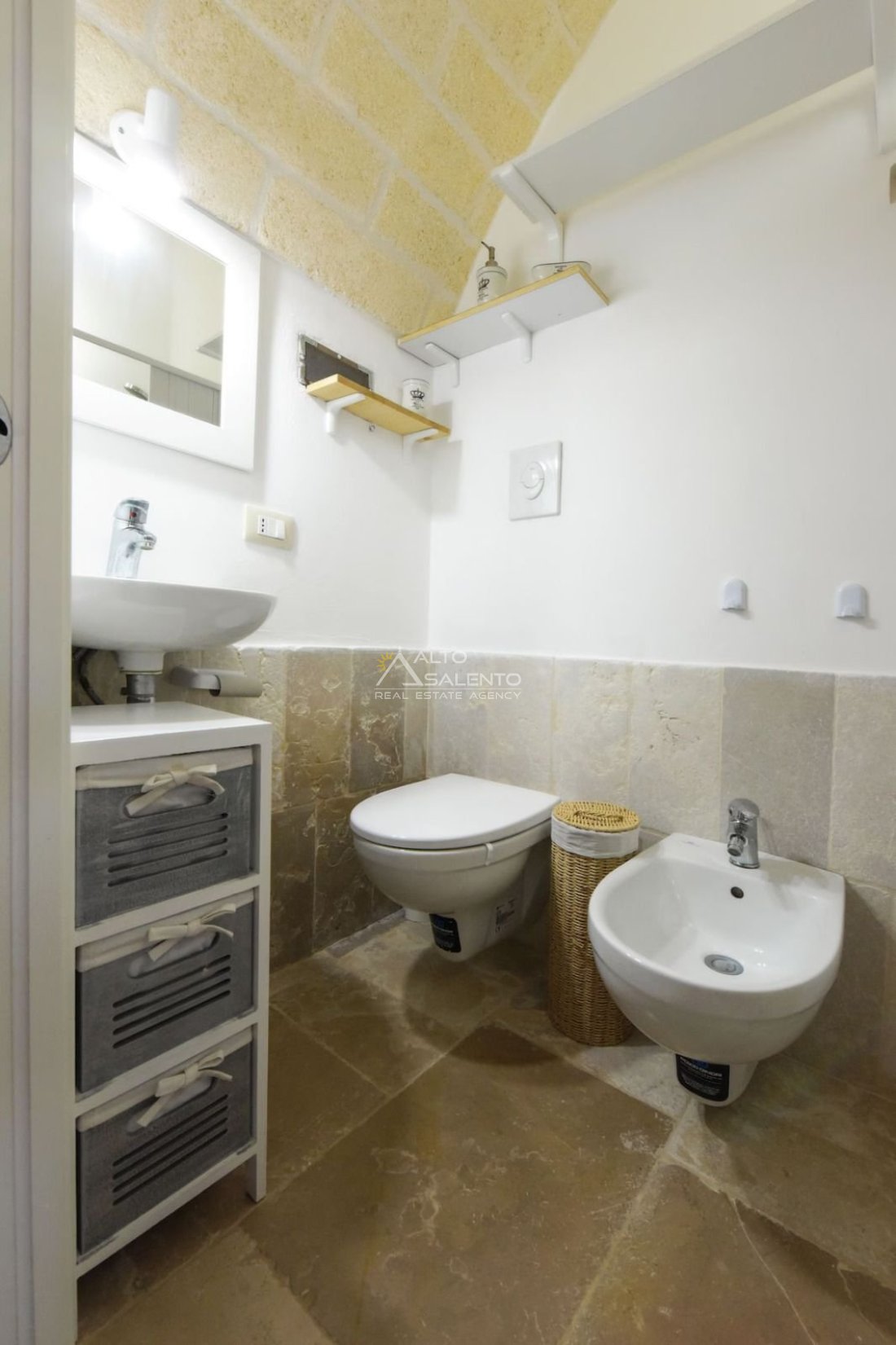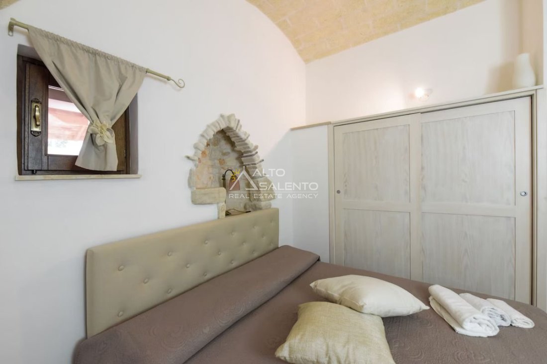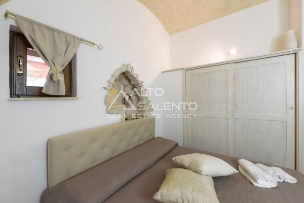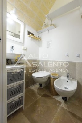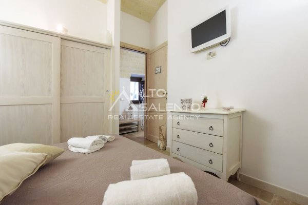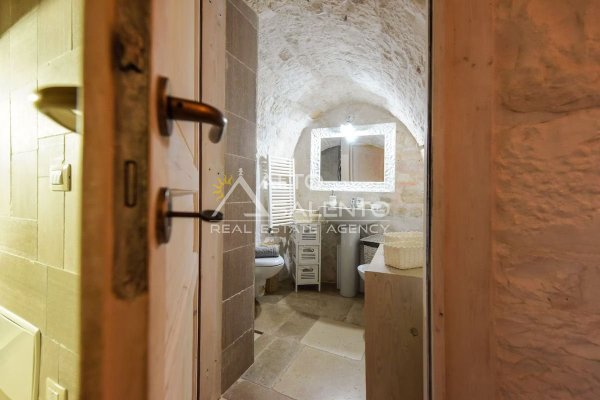 La superficie complessiva è di circa 125 mq, distribuiti in modo funzionale e accogliente. Gli ambienti interni conservano elementi tradizionali come la pavimentazione in chianche, valorizzata da finiture curate e materiali di qualità.