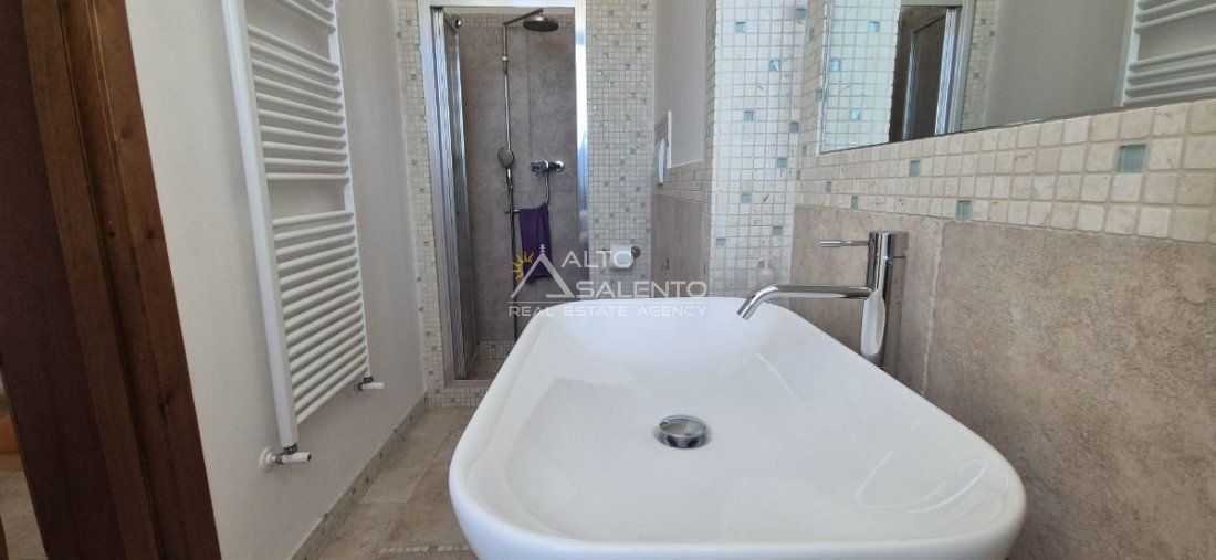 La proprietà è circondata da un terreno pianeggiante di circa 7.500 mq, piantumato con ulivi secolari e alberi da frutto, che garantisce privacy e tranquillità.