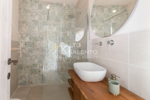 La residenza si distingue per ambienti eleganti e accoglienti, con tre camere matrimoniali, ognuna caratterizzata da un raffinato stile rustico che valorizza la tradizione costruttiva locale. I tre bagni, curati nei dettagli e rifiniti con materiali di qualità, garantiscono comfort e privacy.