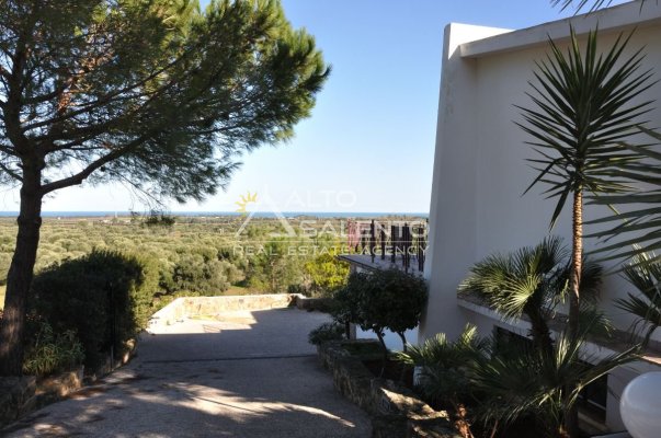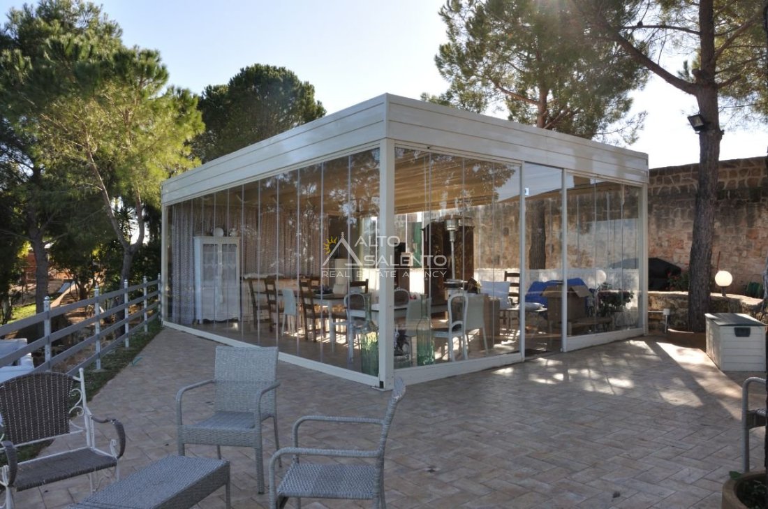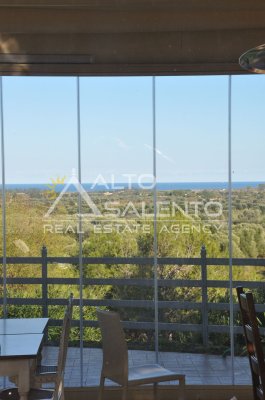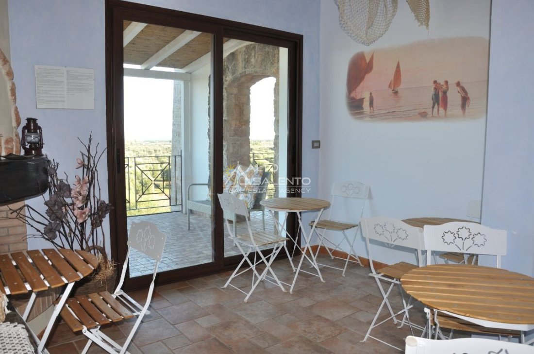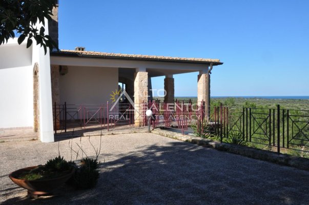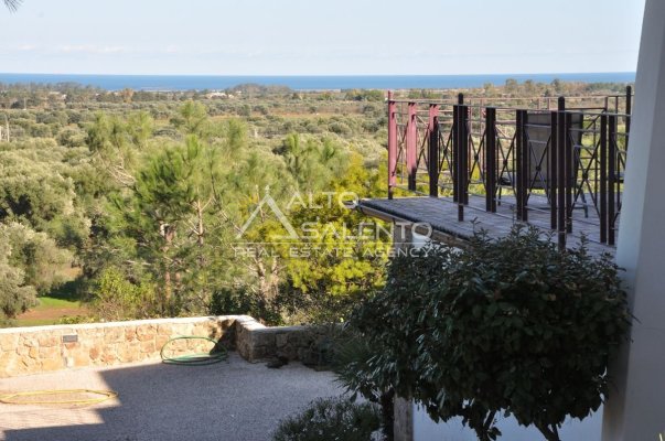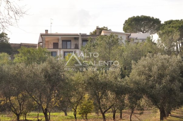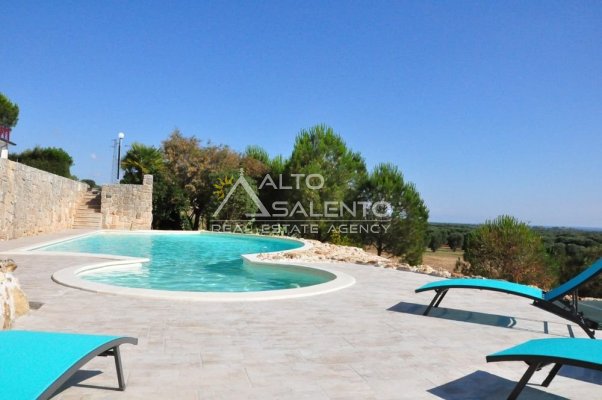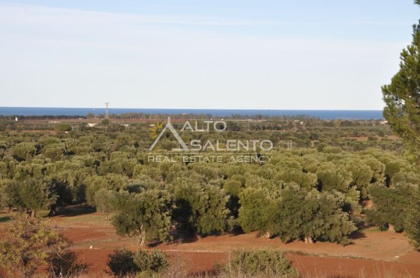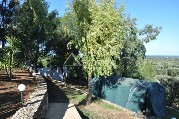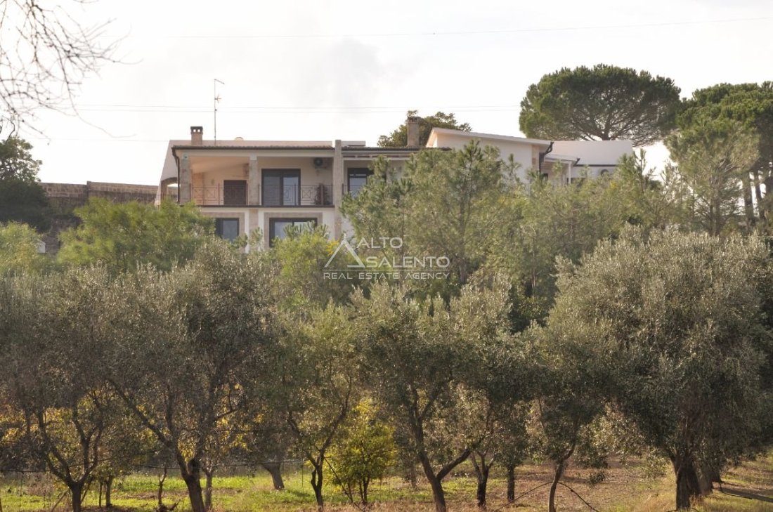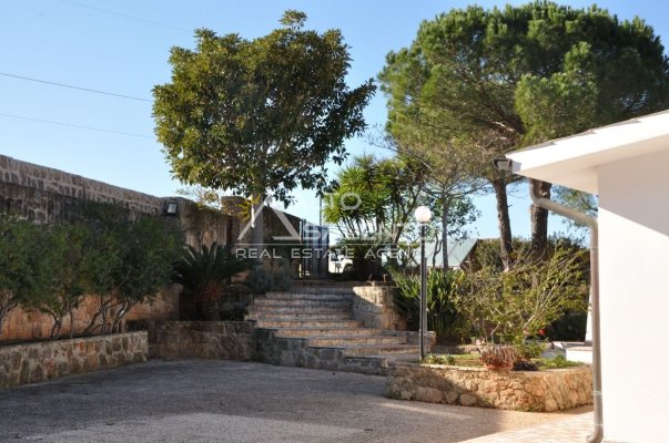 La proprietà si estende su circa tre ettari di terreno, impreziositi da 115 ulivi secolari, seminativo e numerosi alberi da frutto, offrendo un contesto di assoluta privacy e un forte legame con il paesaggio rurale pugliese. La villa è adagiata su un naturale dislivello che crea terrazze panoramiche da cui si gode una vista suggestiva verso il mare e la campagna brindisina, un quadro autentico fatto di ulivi e macchia mediterranea.