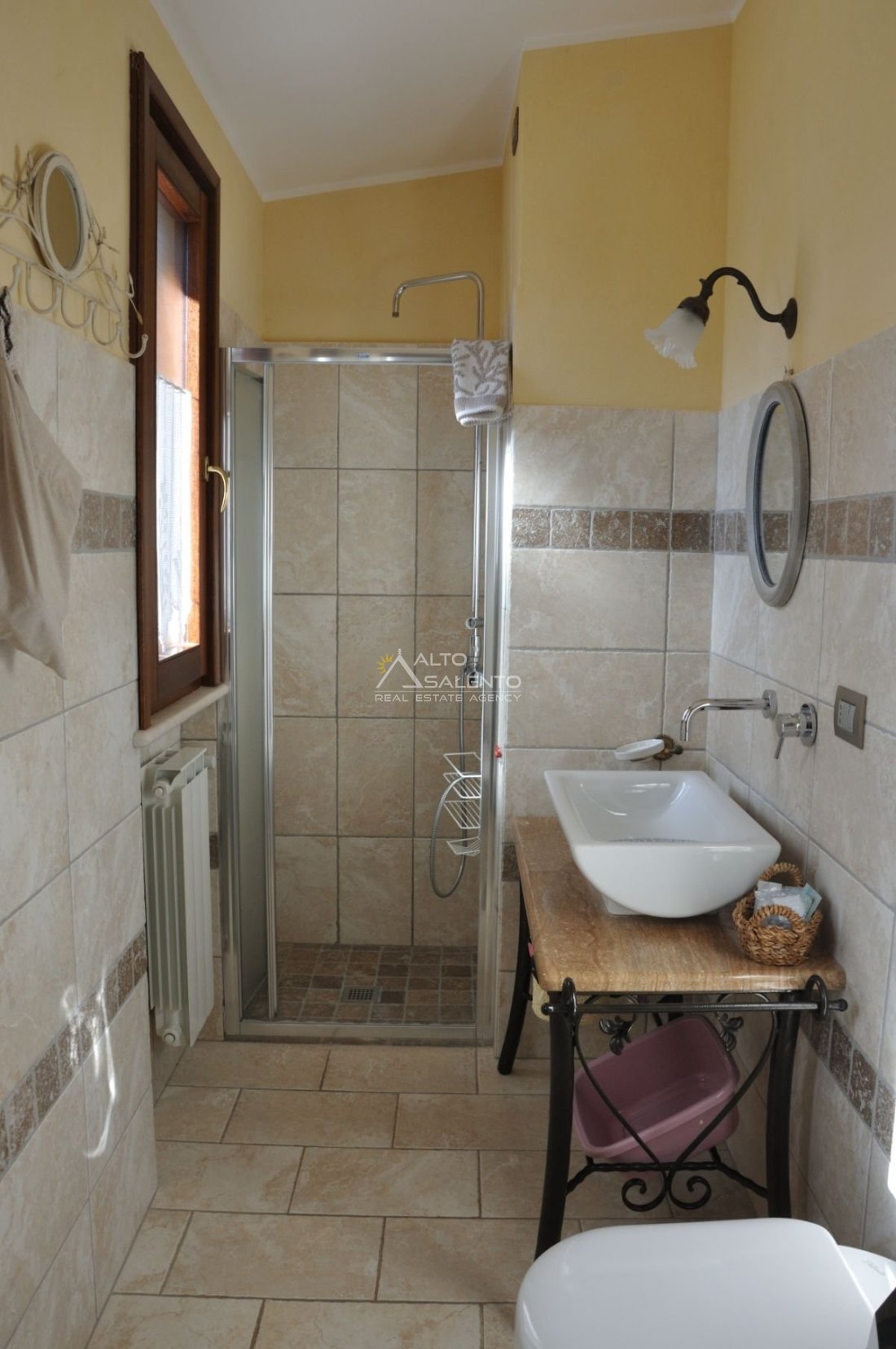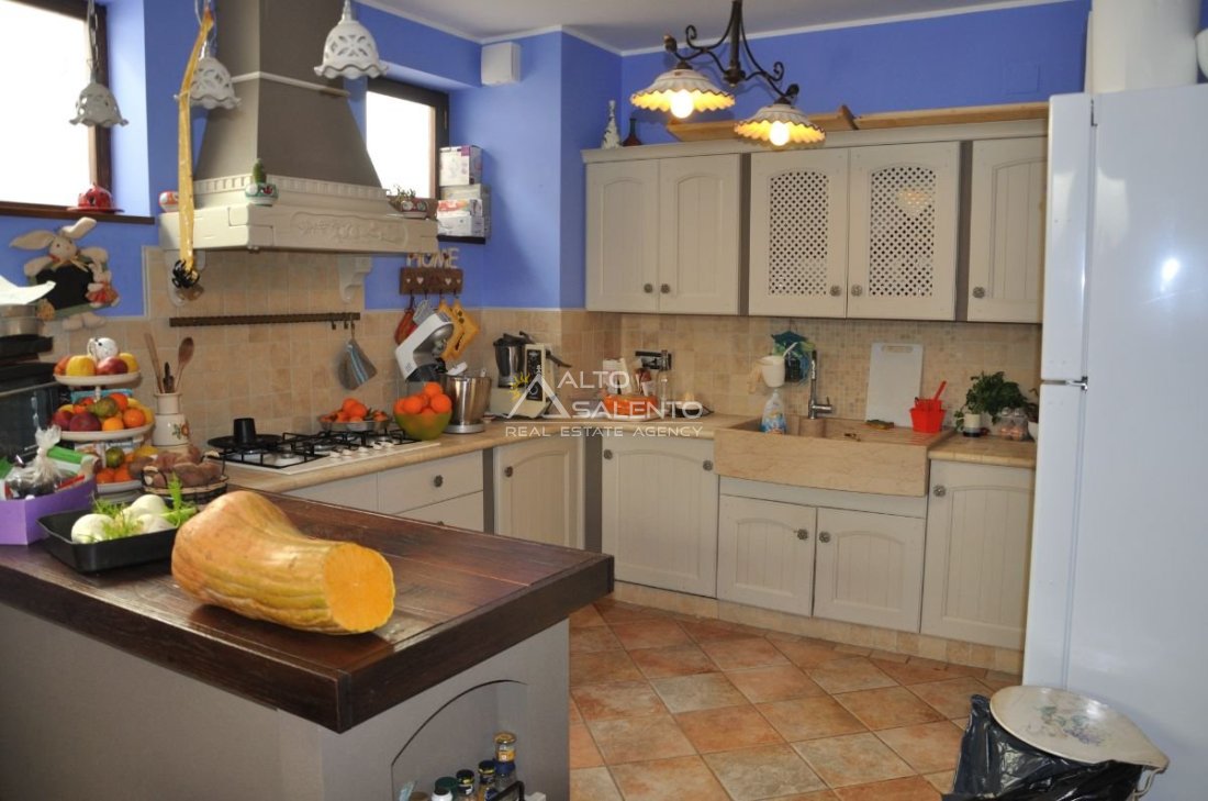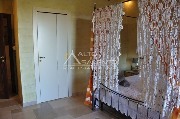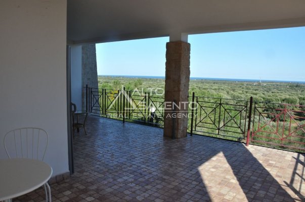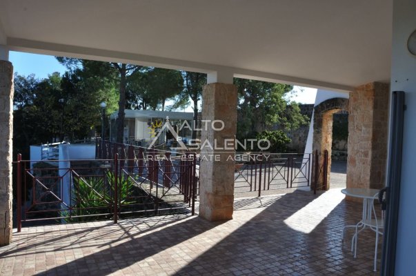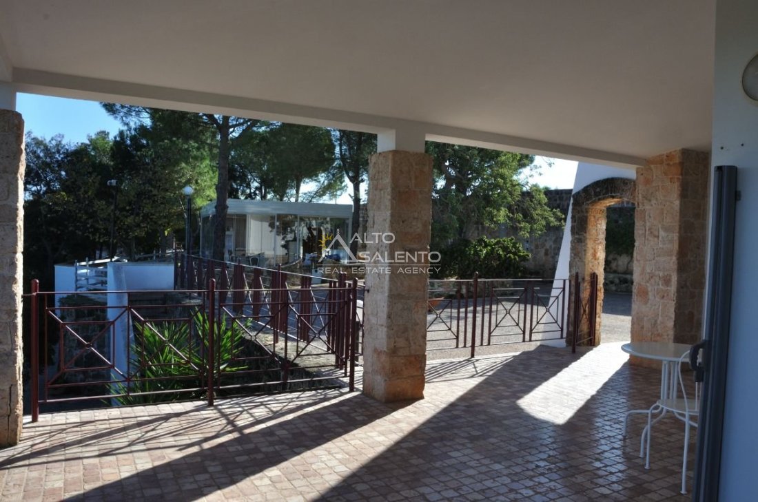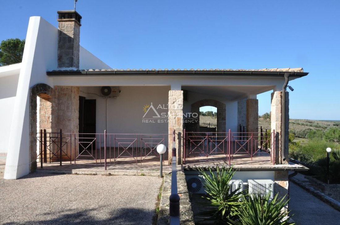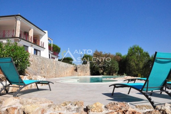 La proprietà si estende su circa tre ettari di terreno, impreziositi da 115 ulivi secolari, seminativo e numerosi alberi da frutto, offrendo un contesto di assoluta privacy e un forte legame con il paesaggio rurale pugliese. La villa è adagiata su un naturale dislivello che crea terrazze panoramiche da cui si gode una vista suggestiva verso il mare e la campagna brindisina, un quadro autentico fatto di ulivi e macchia mediterranea.