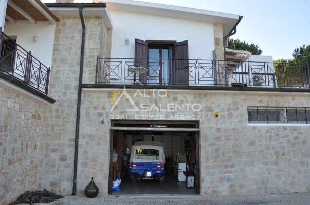 L’intera proprietà è recintata e dotata di impianto di allarme e videosorveglianza. All’esterno troviamo un ampio piazzale pavimentato, piante ornamentali e la scenografica piscina a sfioro con vista panoramica, vero cuore degli spazi outdoor. Su una delle terrazze è presente inoltre una struttura vetrata adibita a sala da pranzo con cucina, ideale per vivere momenti conviviali immersi nel paesaggio.
